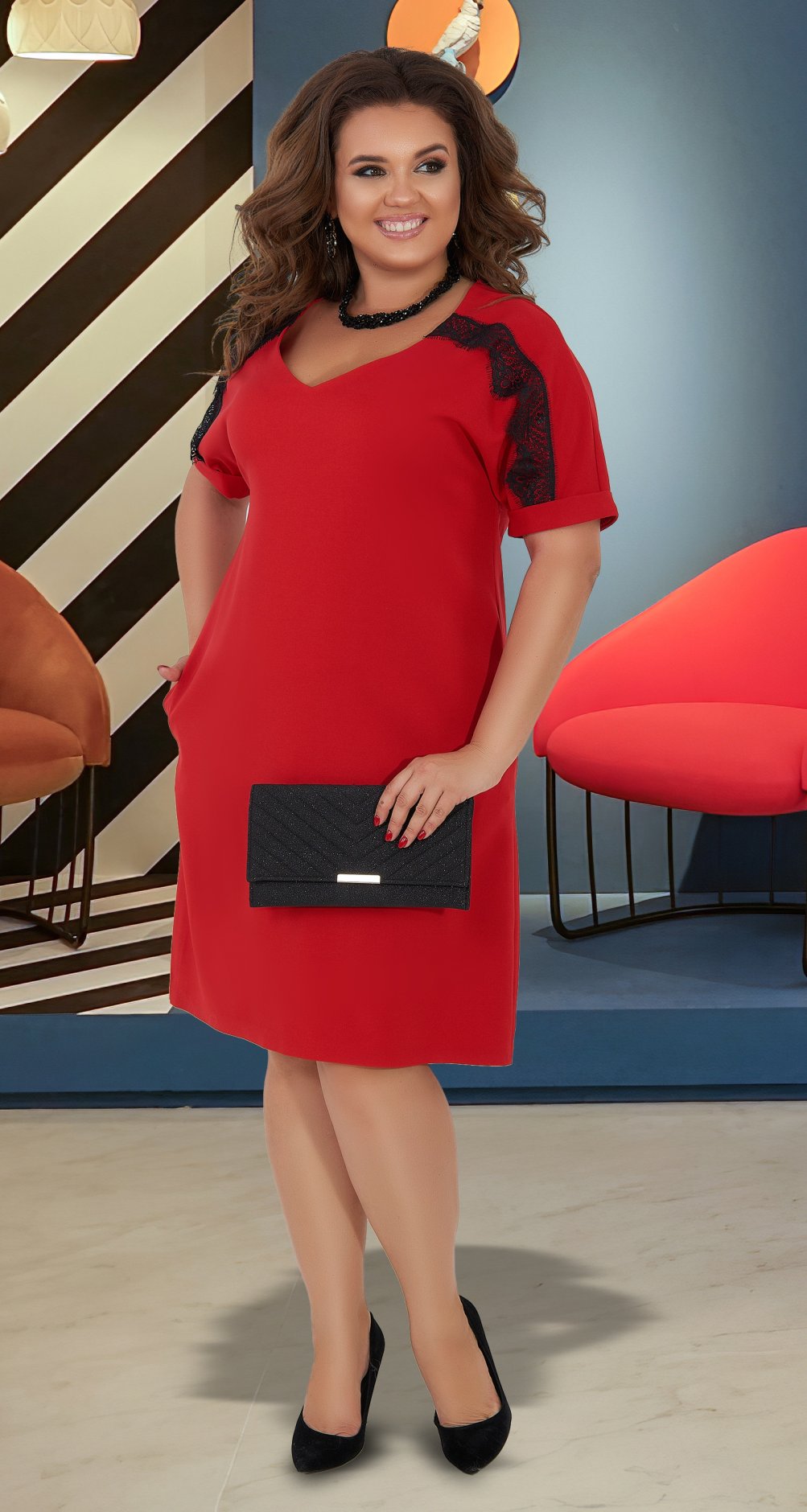 Но компания LEMANTA просит Вас учитывать, что трикотажное платье всегда будет на 10% меньше чем платье из текстиля, по своим обмерным данным! В этом случае оно выглядит более эстетично и женственно.