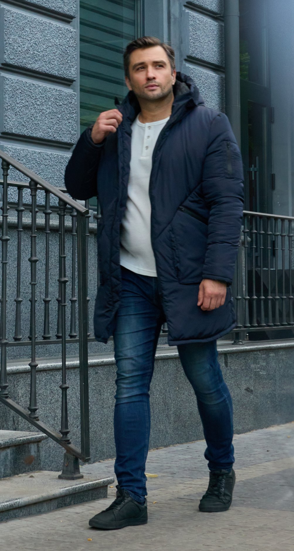 На модели 56 размер , но из-за плотности утеплителя он немного маловат. Лучше-бы взять на размер больше!