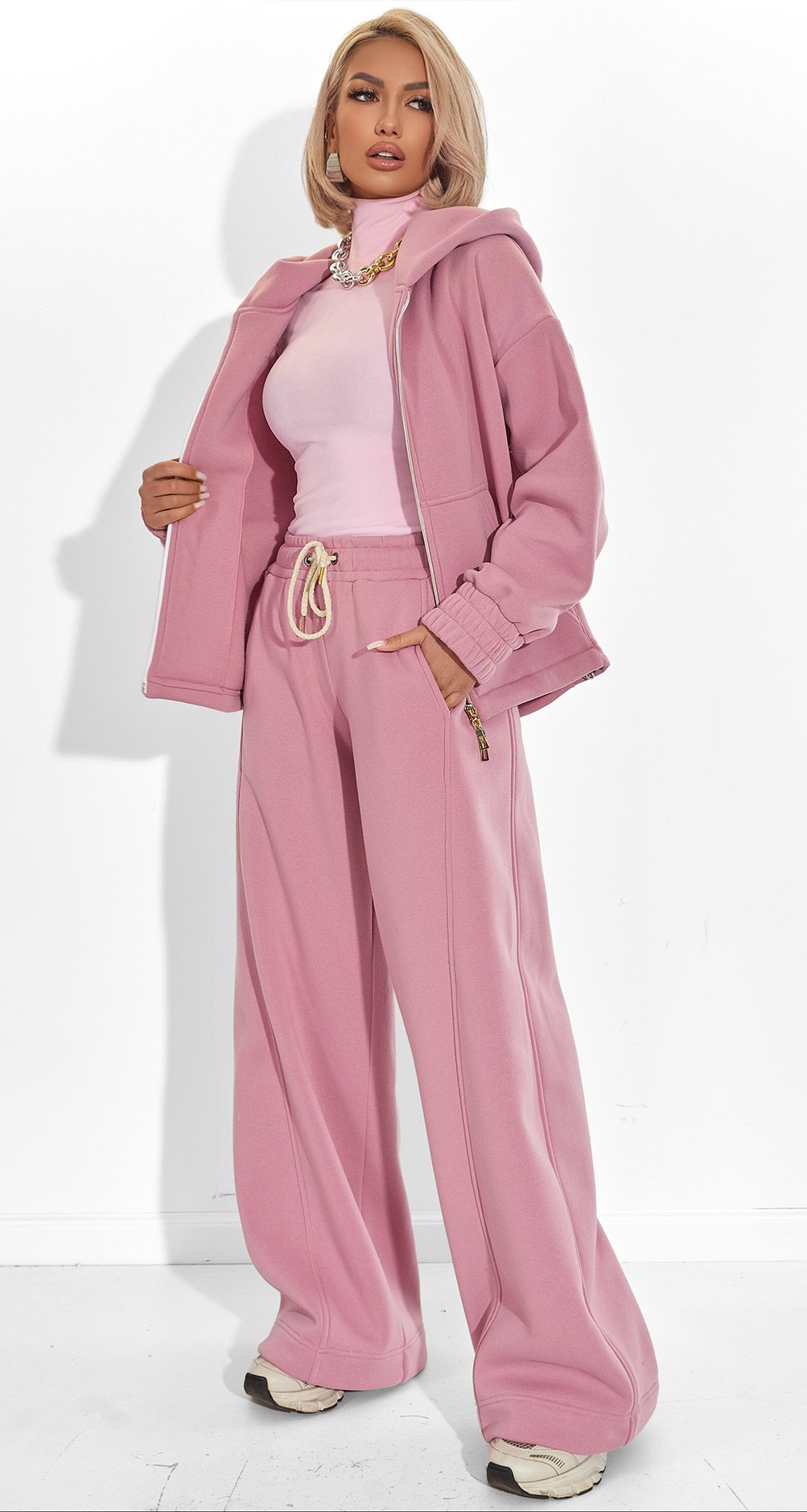 Вам нужен самый мягкий, самый теплый и при этом самый трендовый костюм на холодный сезон? Хочется легко менять силуэт брюк — от свободных палаццо до модных джоггеров? Ищете премиальное качество и стильные, нежные цвета?
