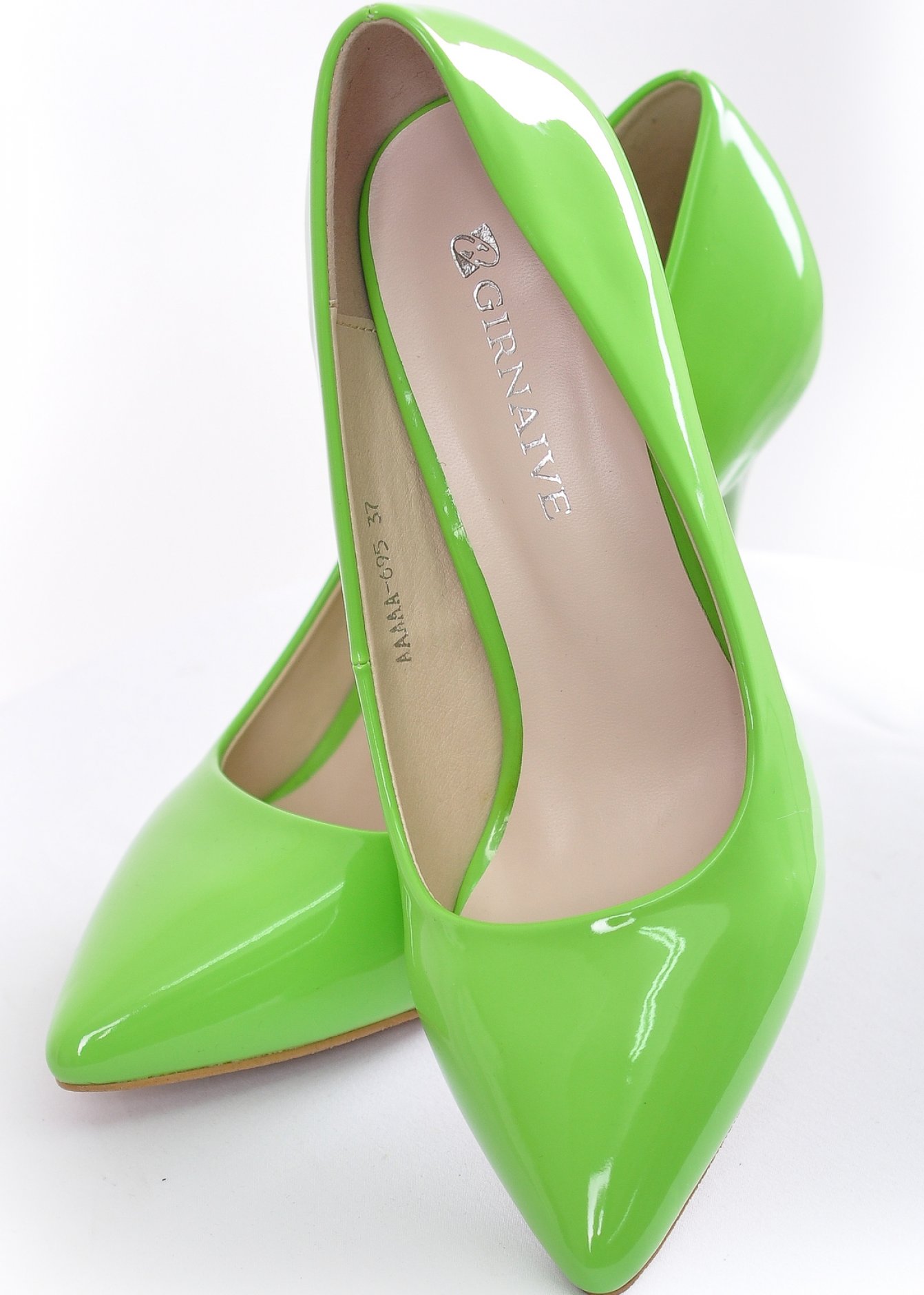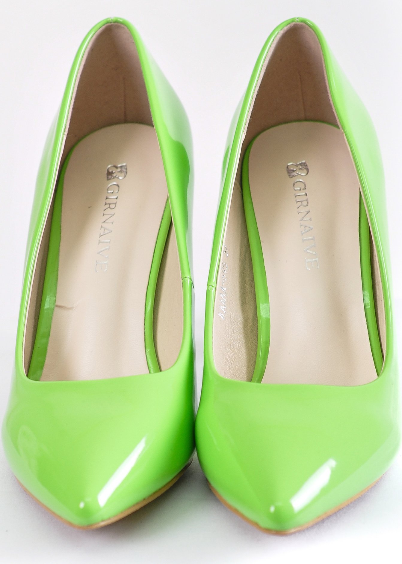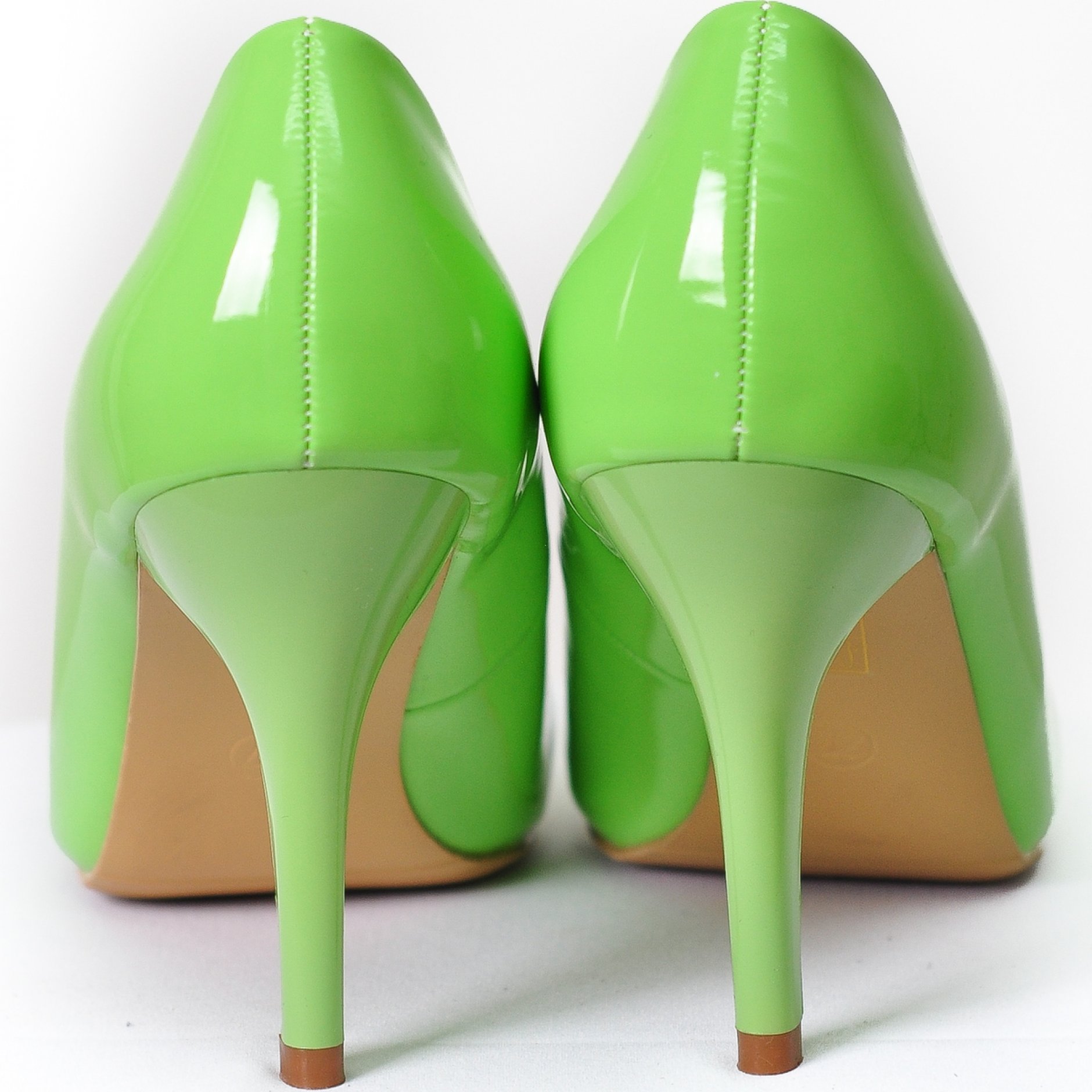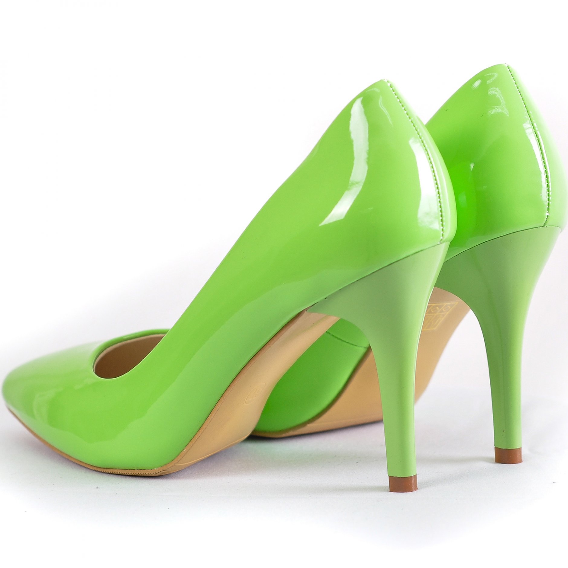 Женские лакированные туфли – лодочки салатового цвета на устойчивом каблуке шпилька. Высота каблука 9 см. Идеально подходят для контрастных и ярких сочетаний в одежде.