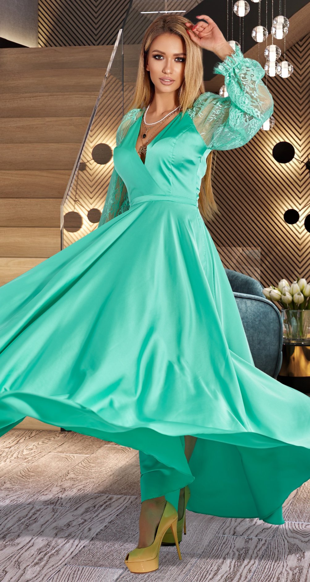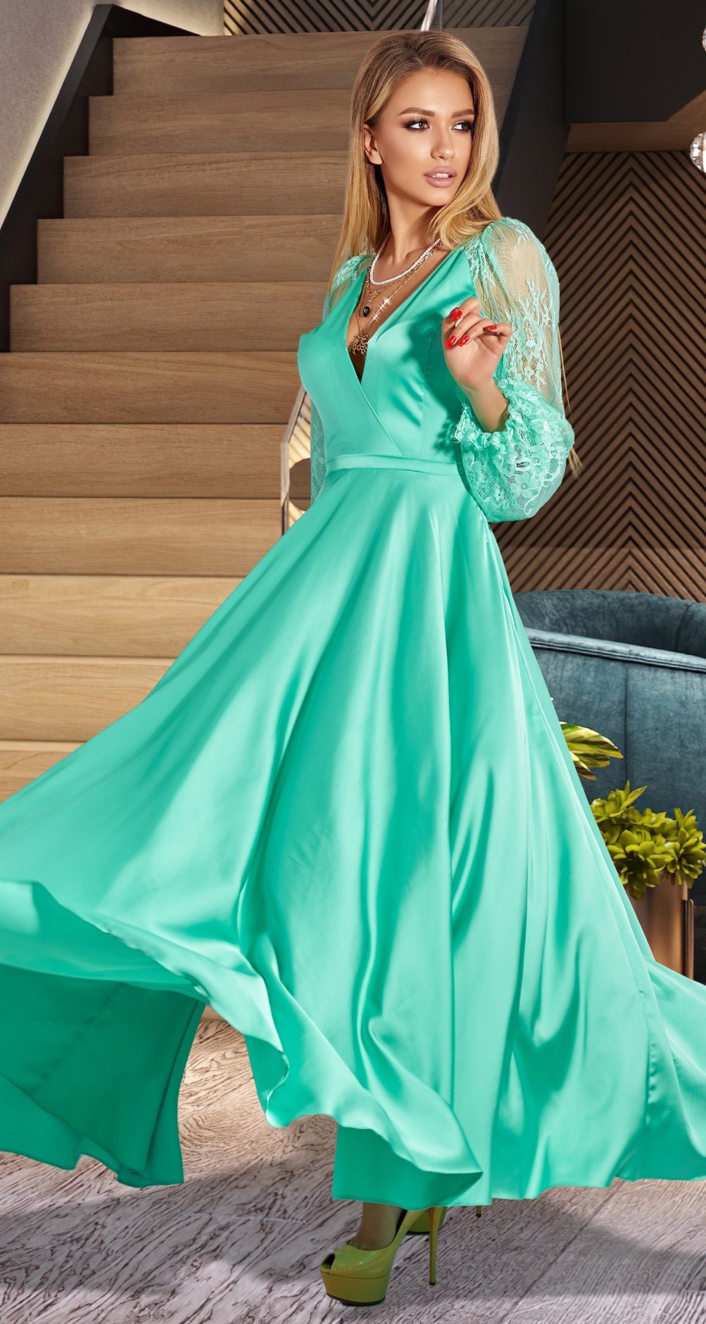 Безумно красивая струящаяся юбка и глубокое декольте!