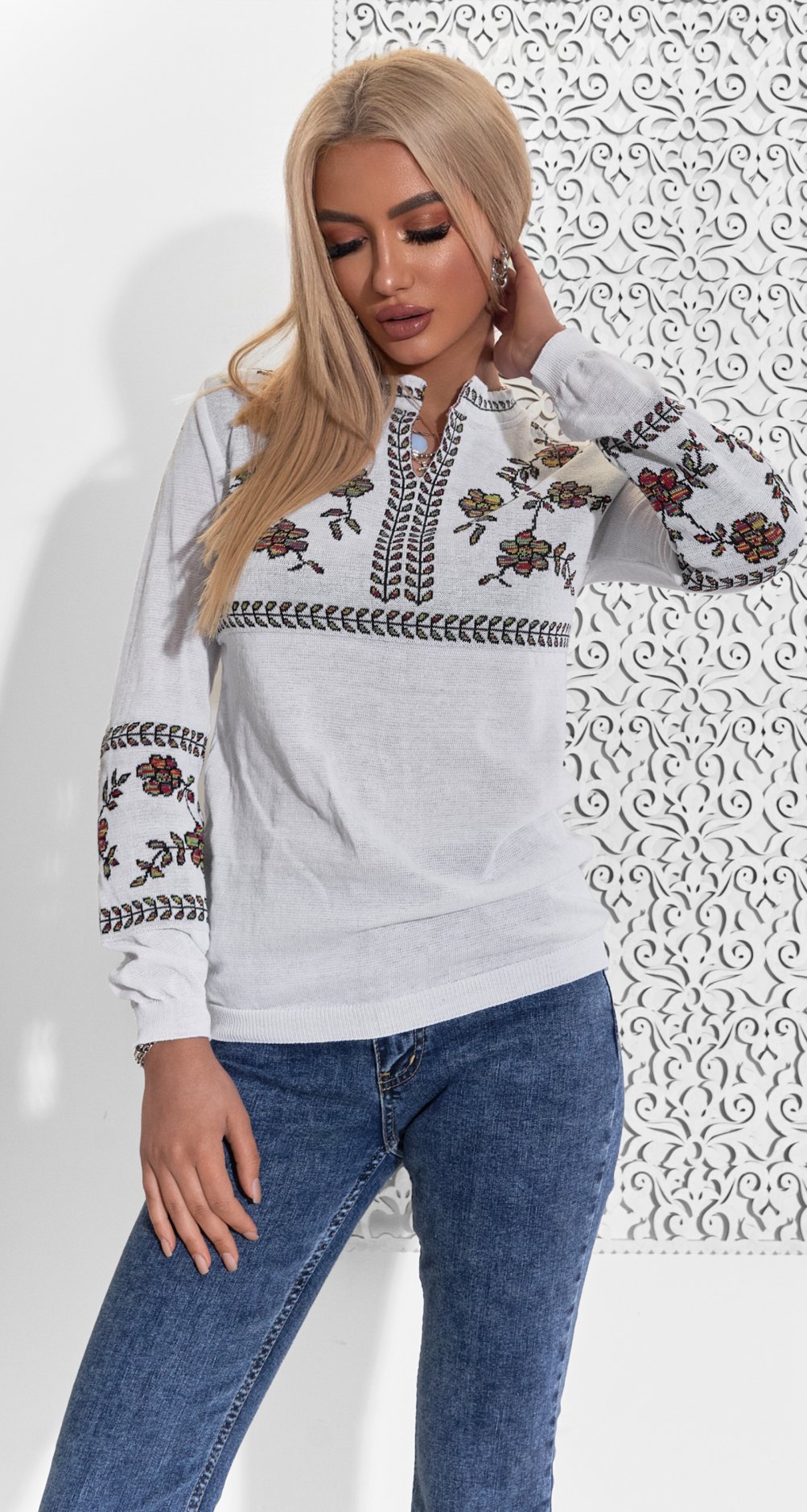 Каталог - Блузы - Вязанная хлопковая блузка вышиванка