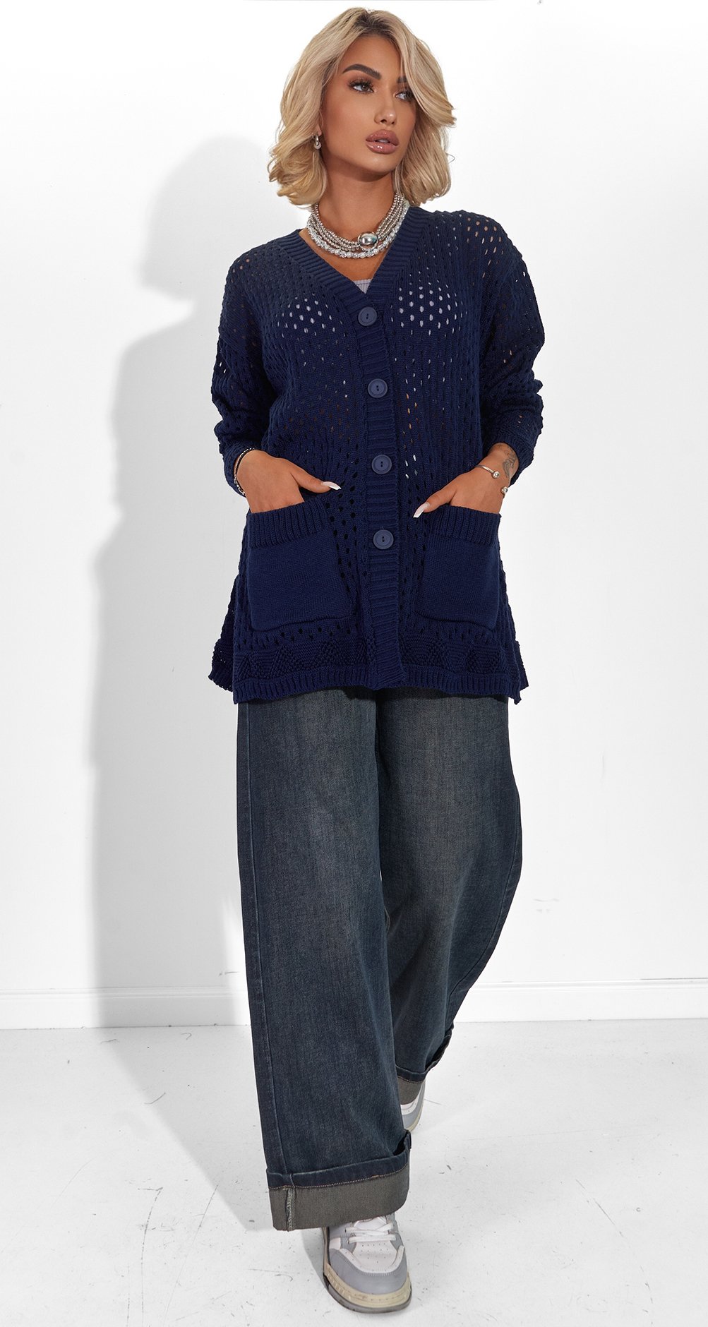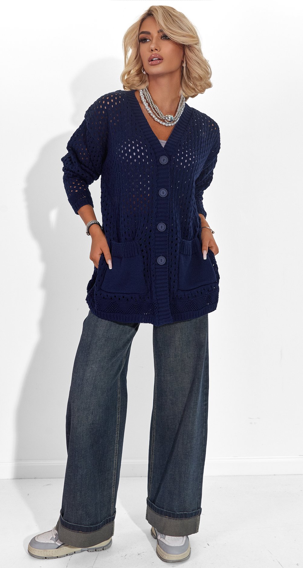 Теплый, но легкий, этот вязаный кардиган оверсайз станет вашим любимым спутником в прохладные летние вечера и уютные осенние дни. Практичные карманы добавляют функциональности и удобства.