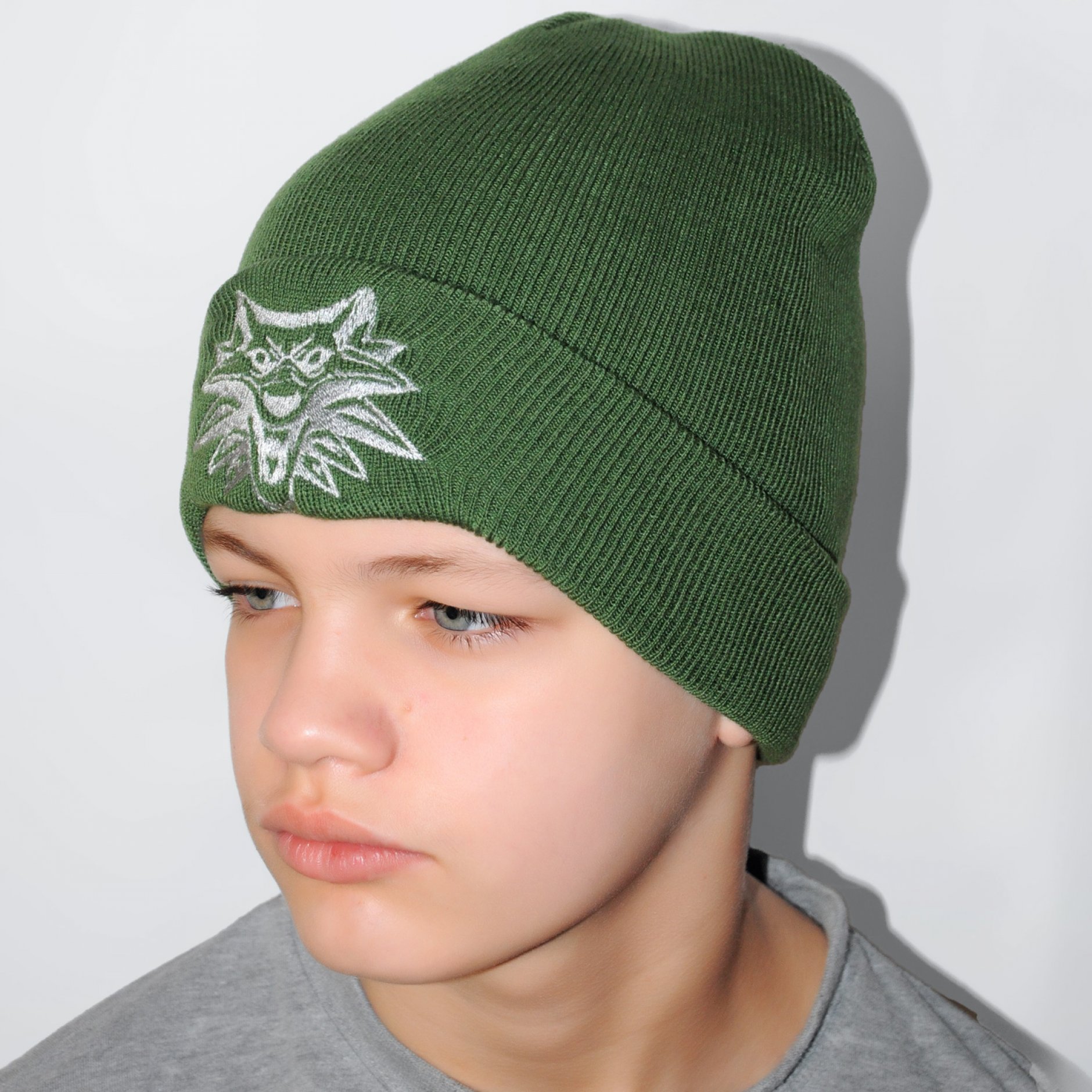 Шапка з вишивкою зелена на підлітка.