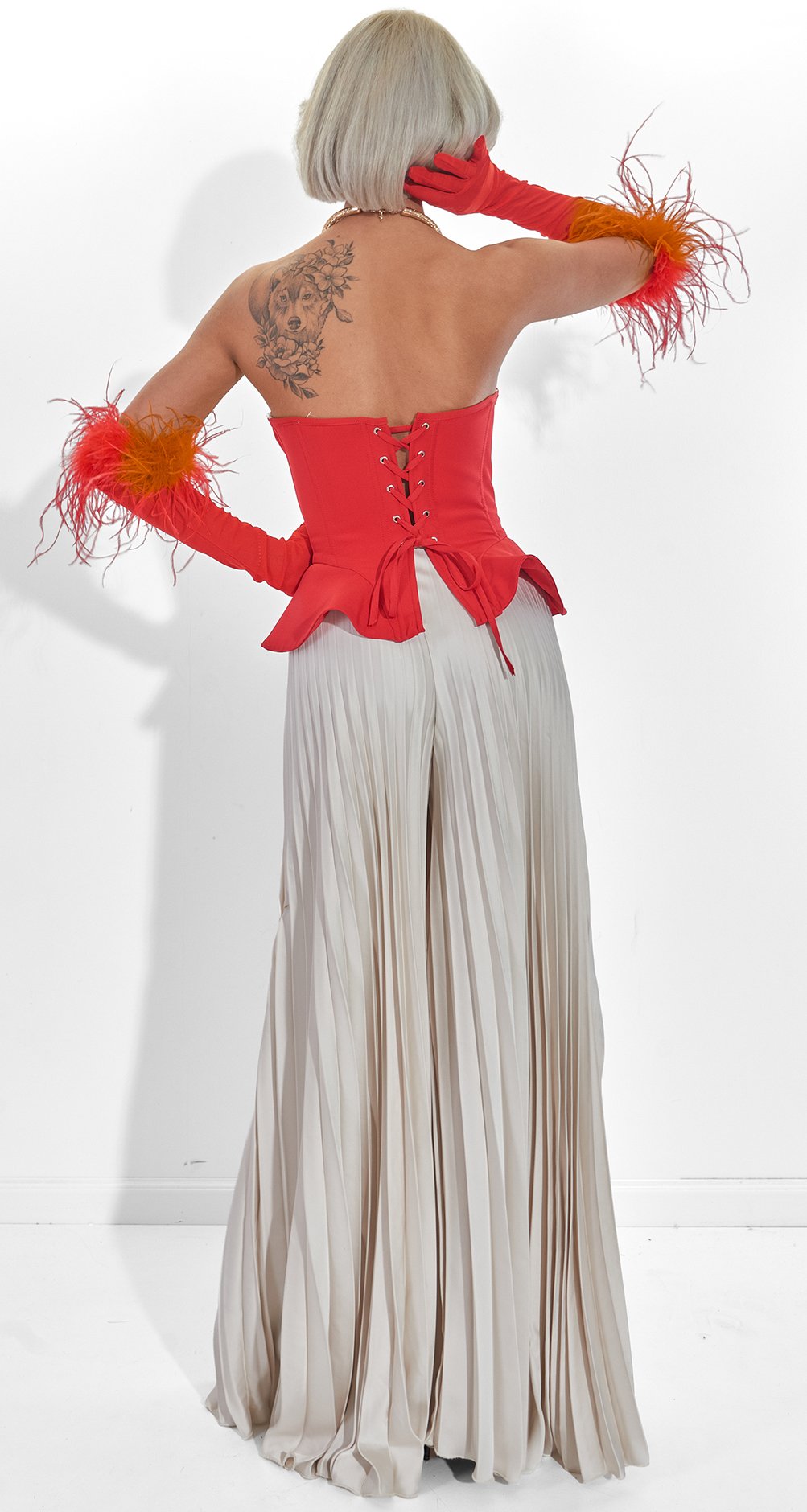 Ці штани пліссе – втілення жіночності та динаміки. Ми створили їх для тих моментів, коли хочеться відчувати легкість кожного кроку, не жертвуючи при цьому елегантністю.