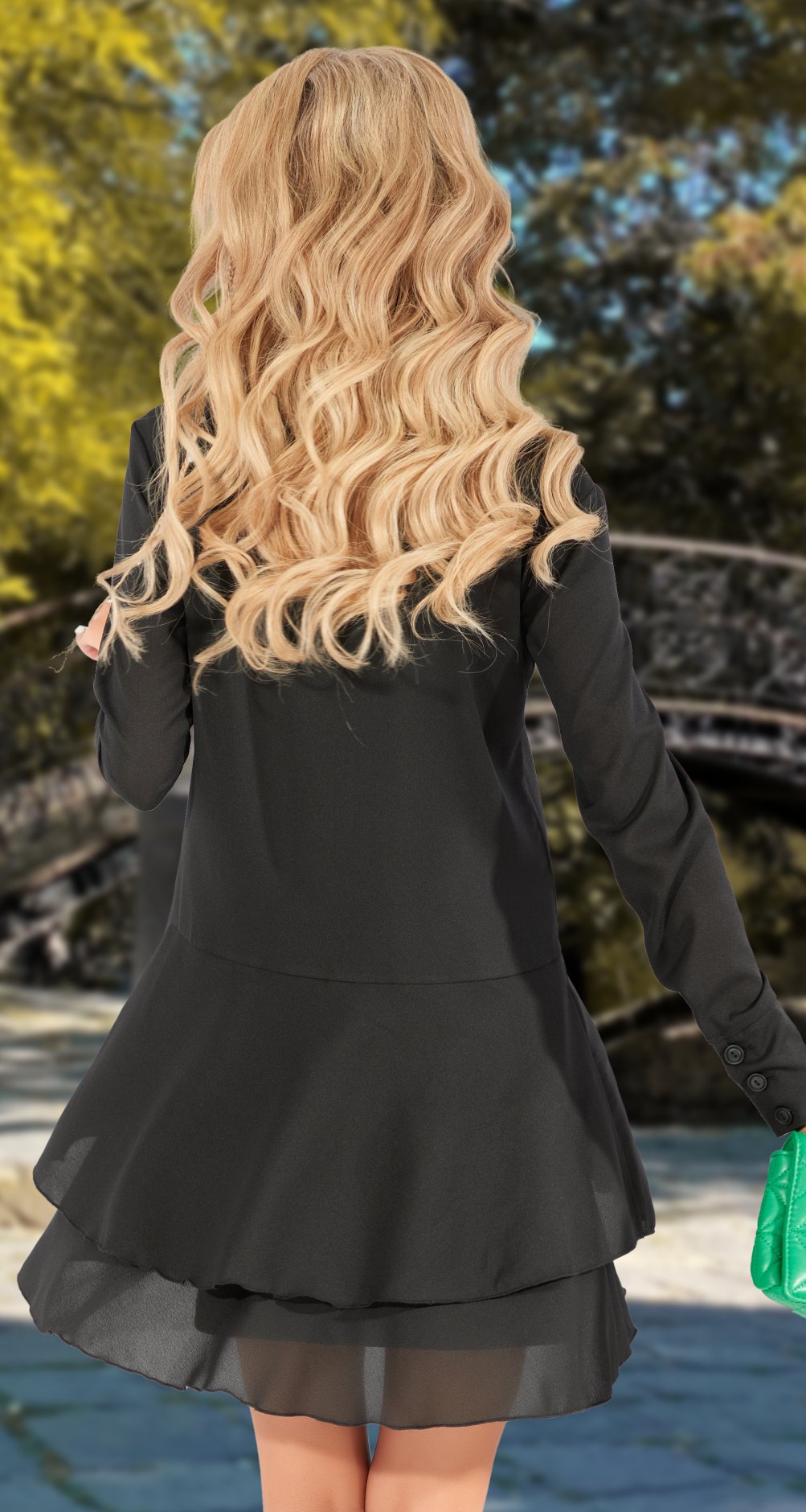 Сорочковий комір у шифонової сукні і застібка на ґудзички в колір!