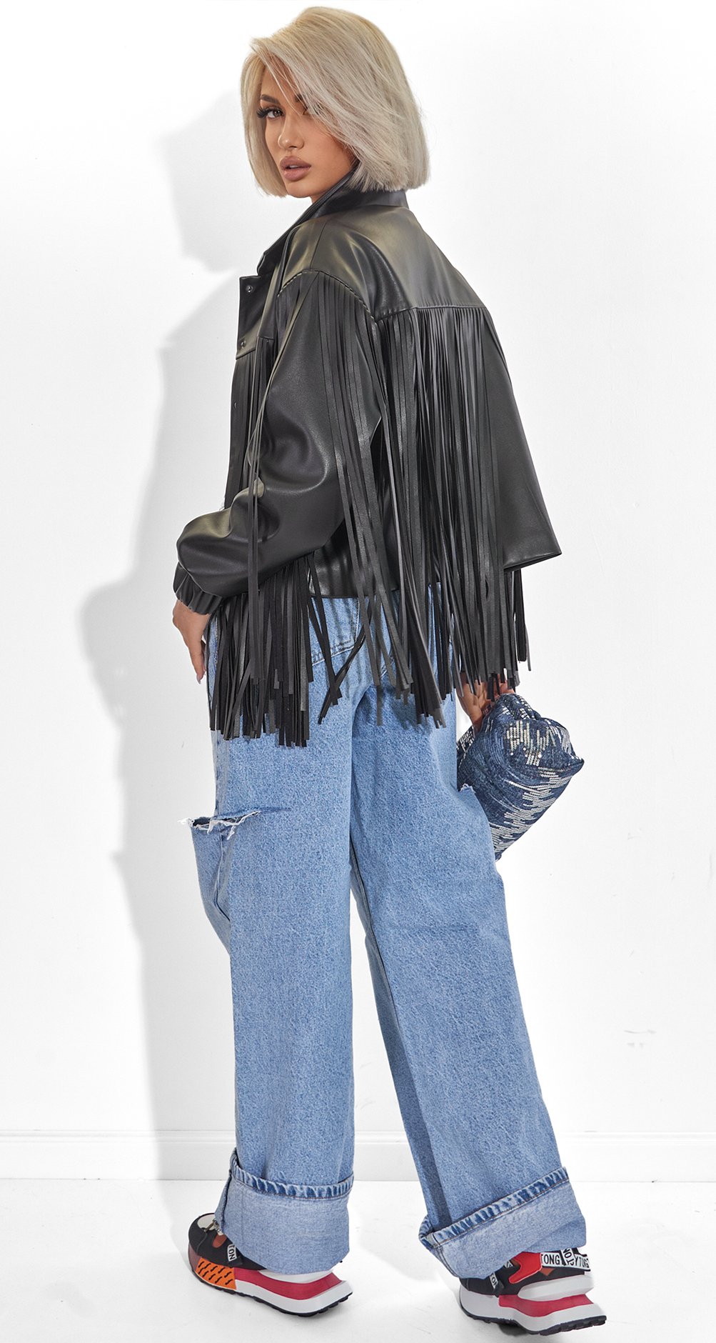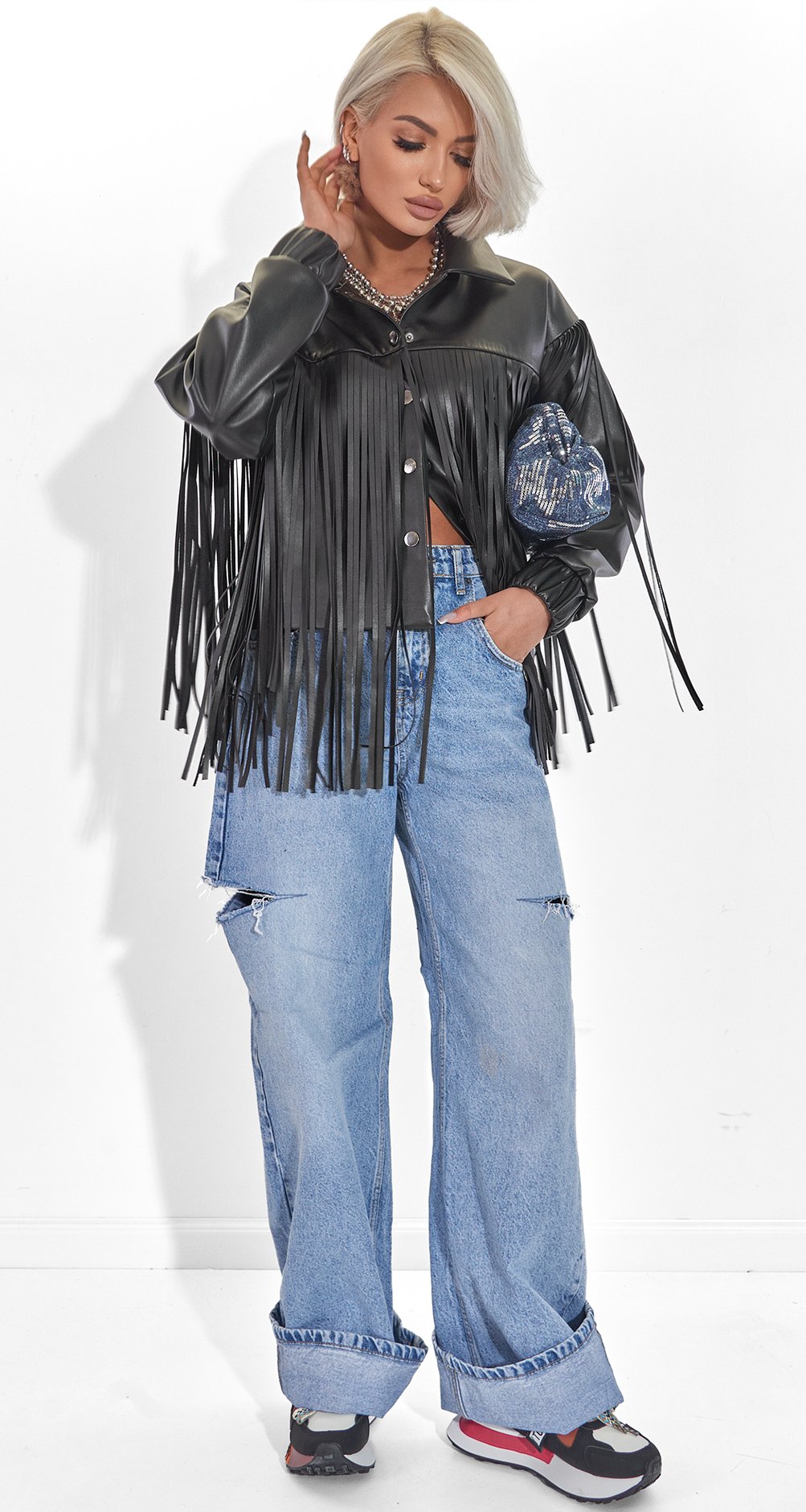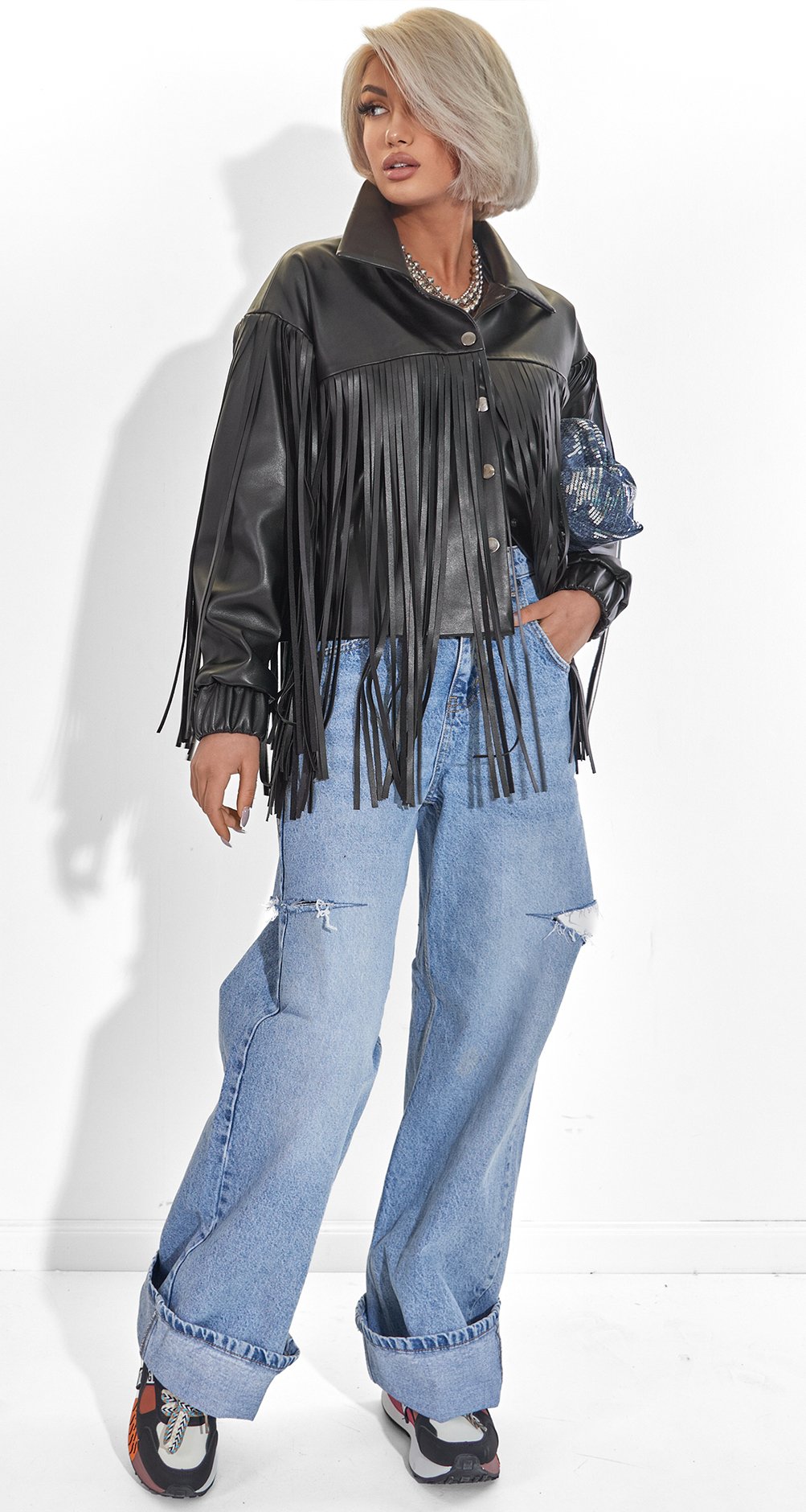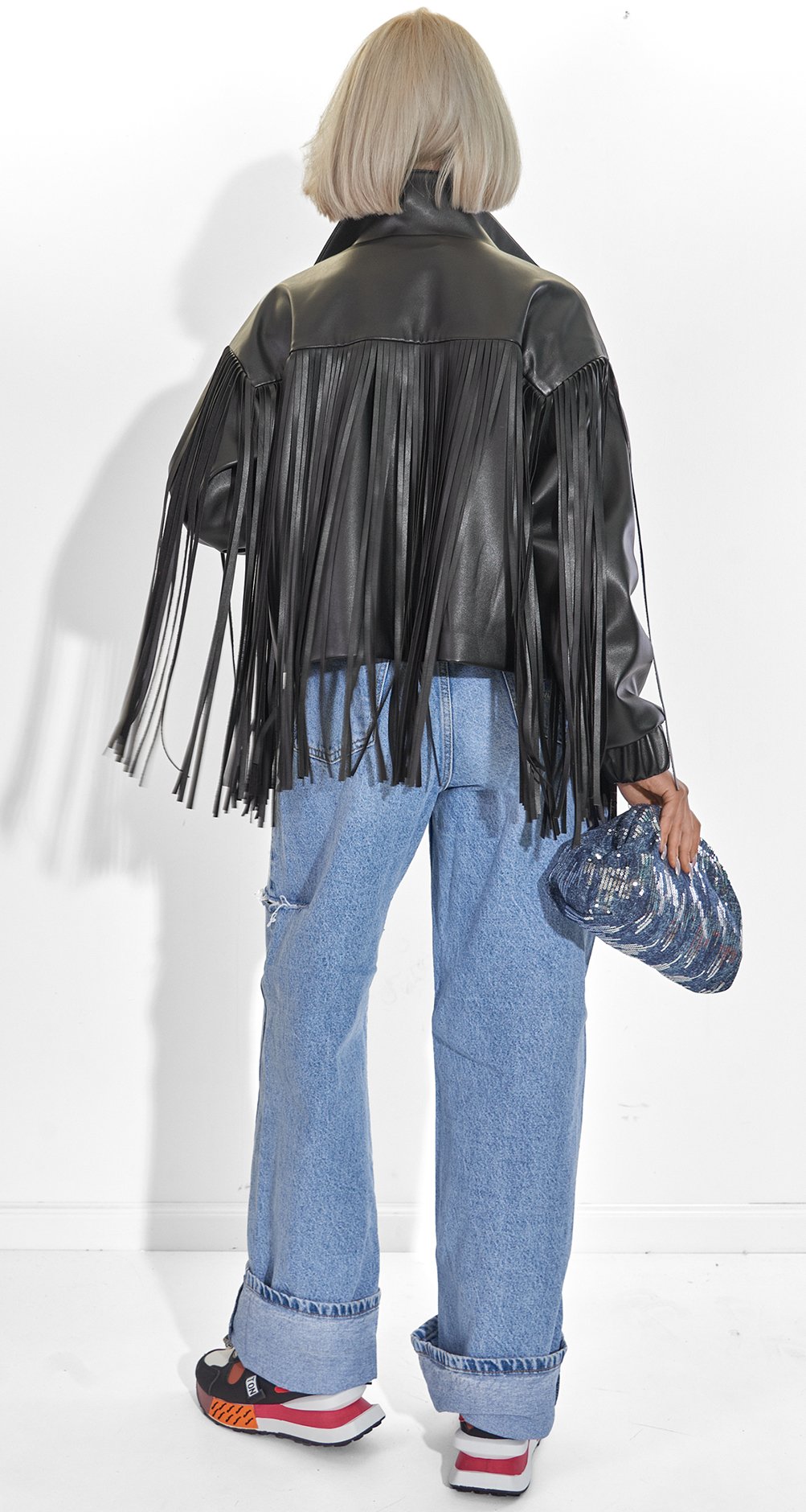 Наш новий бомбер із екошкіри з бахромою – це виклик нудним образам і твоя нова модна залежність.