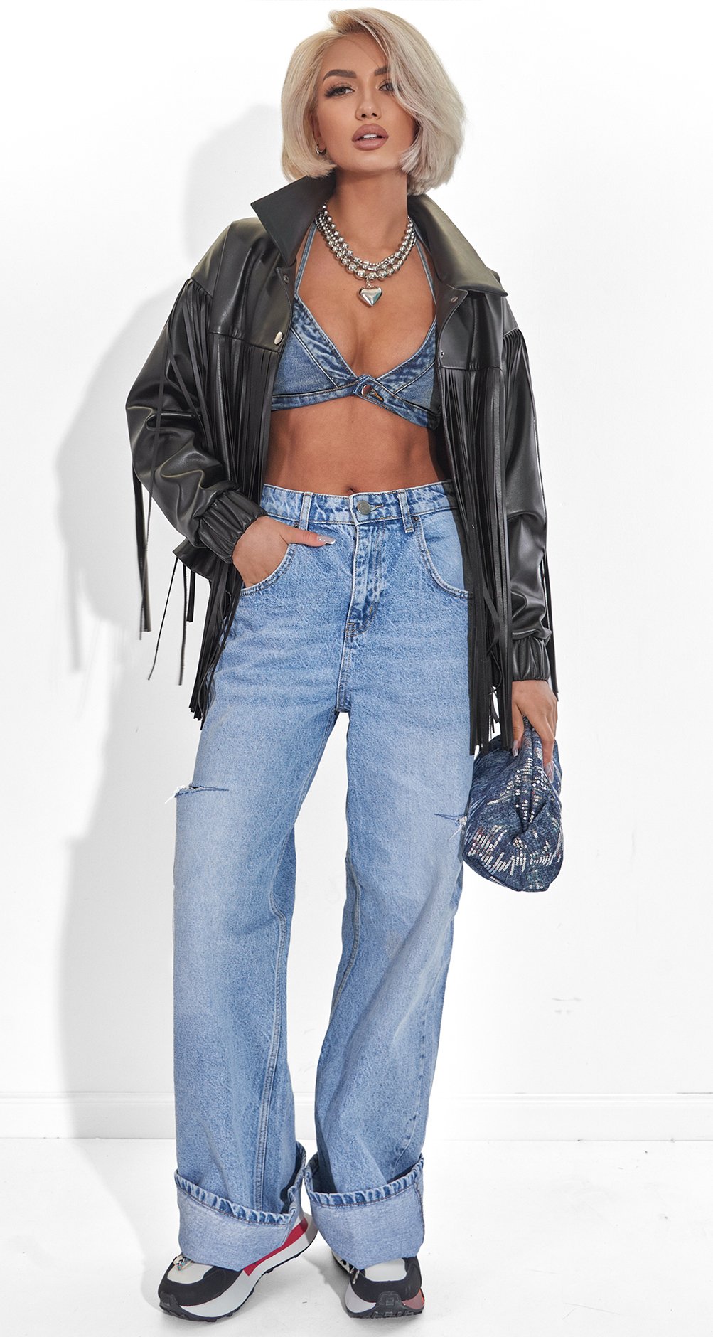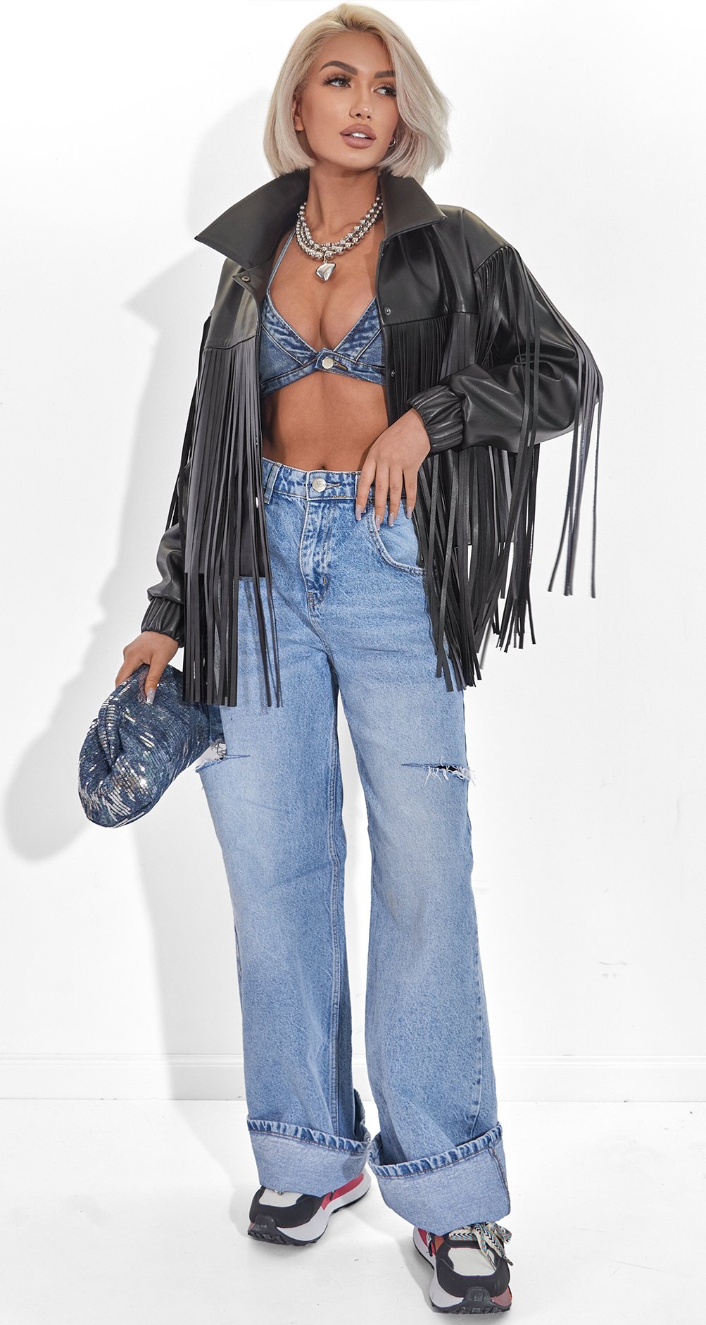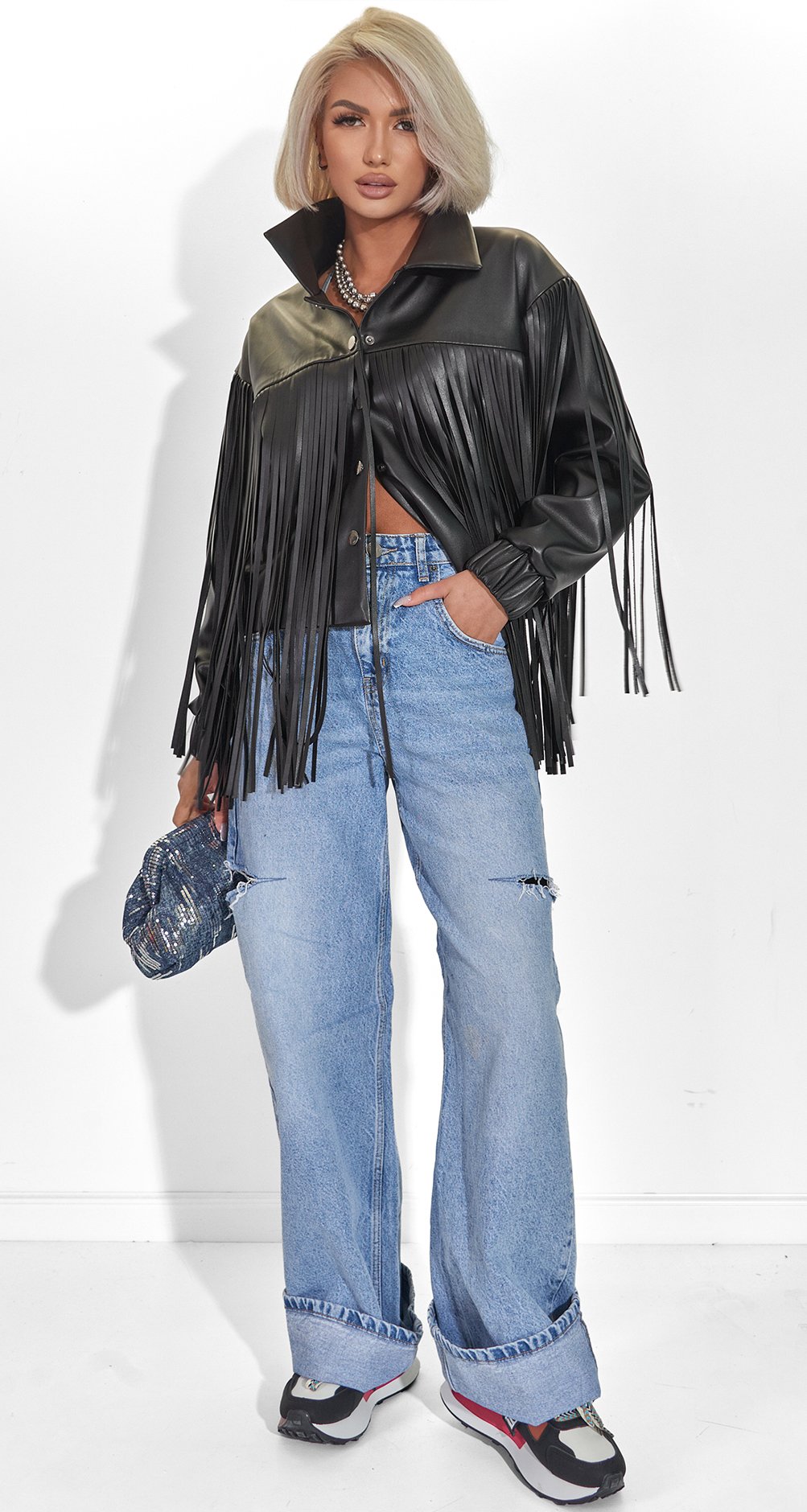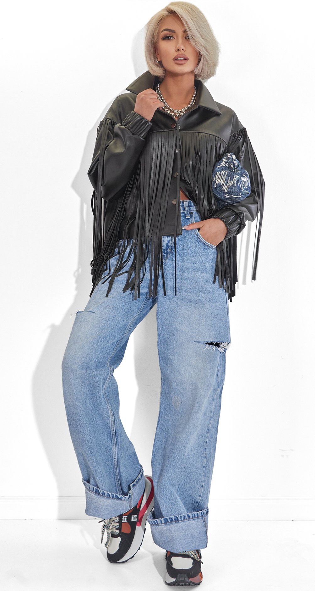 Наш новий бомбер із екошкіри з бахромою – це виклик нудним образам і твоя нова модна залежність.