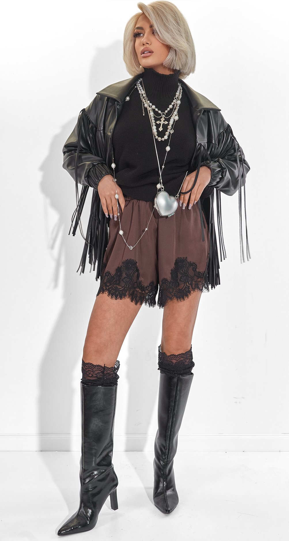 Створіть Total Look, додавши наш чорний корсет або шоколадну шовкову блузу.