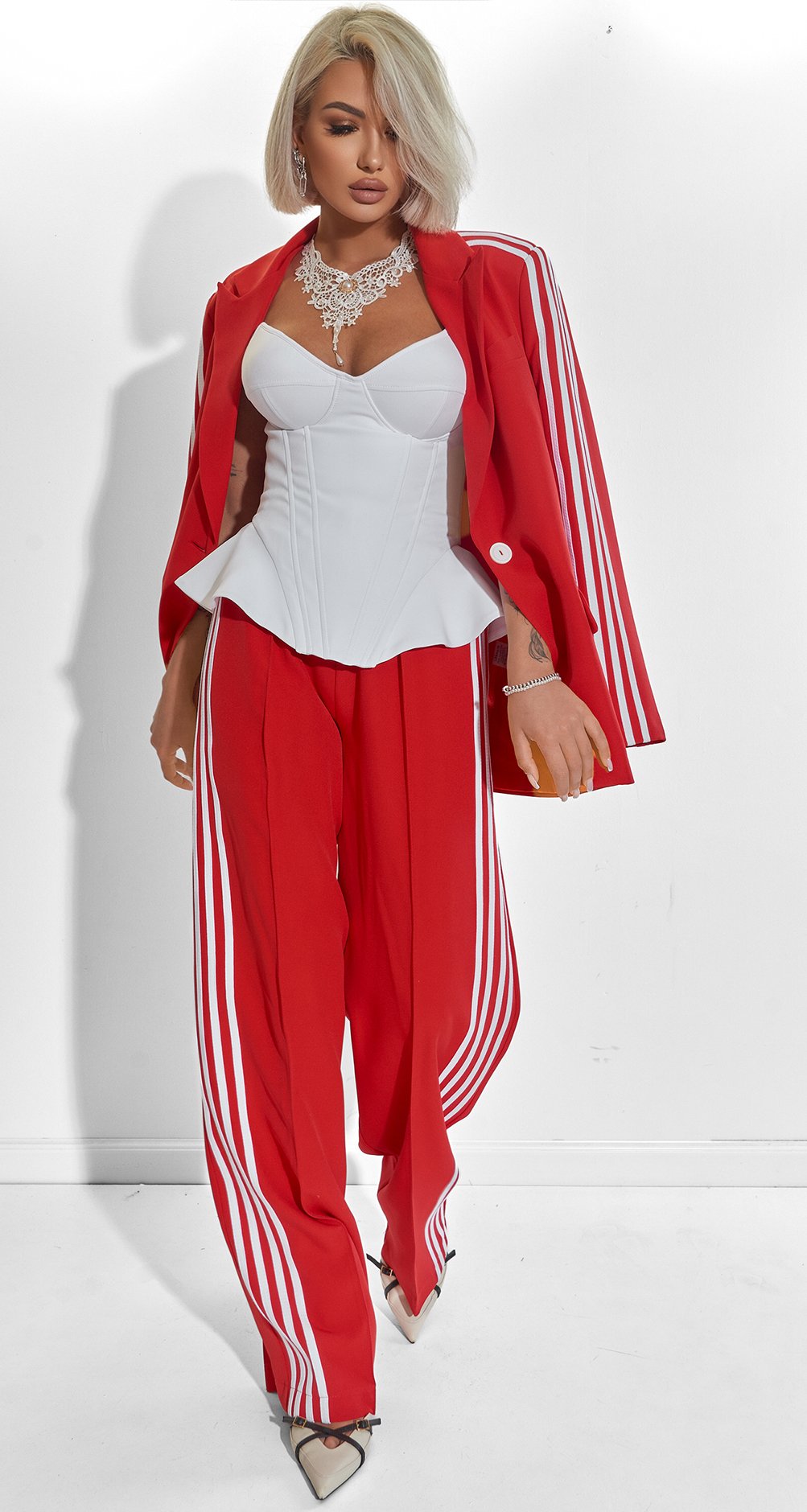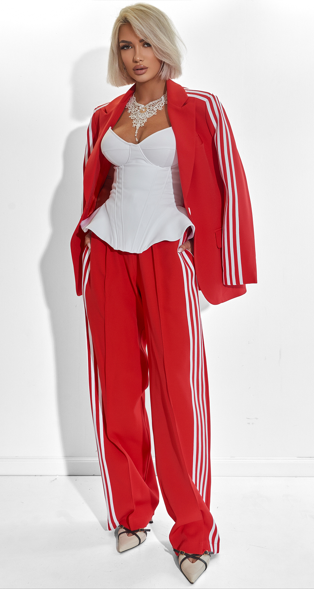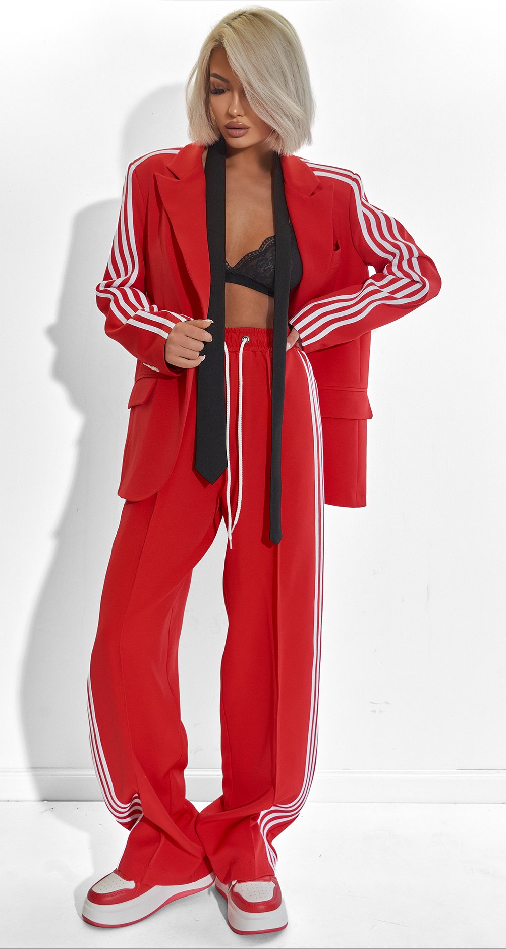 Елементи Sport-Luxe: Трендові лампаси з боків додають образу зухвалості та вертикального акценту, який робить фігуру ще стрункішою.