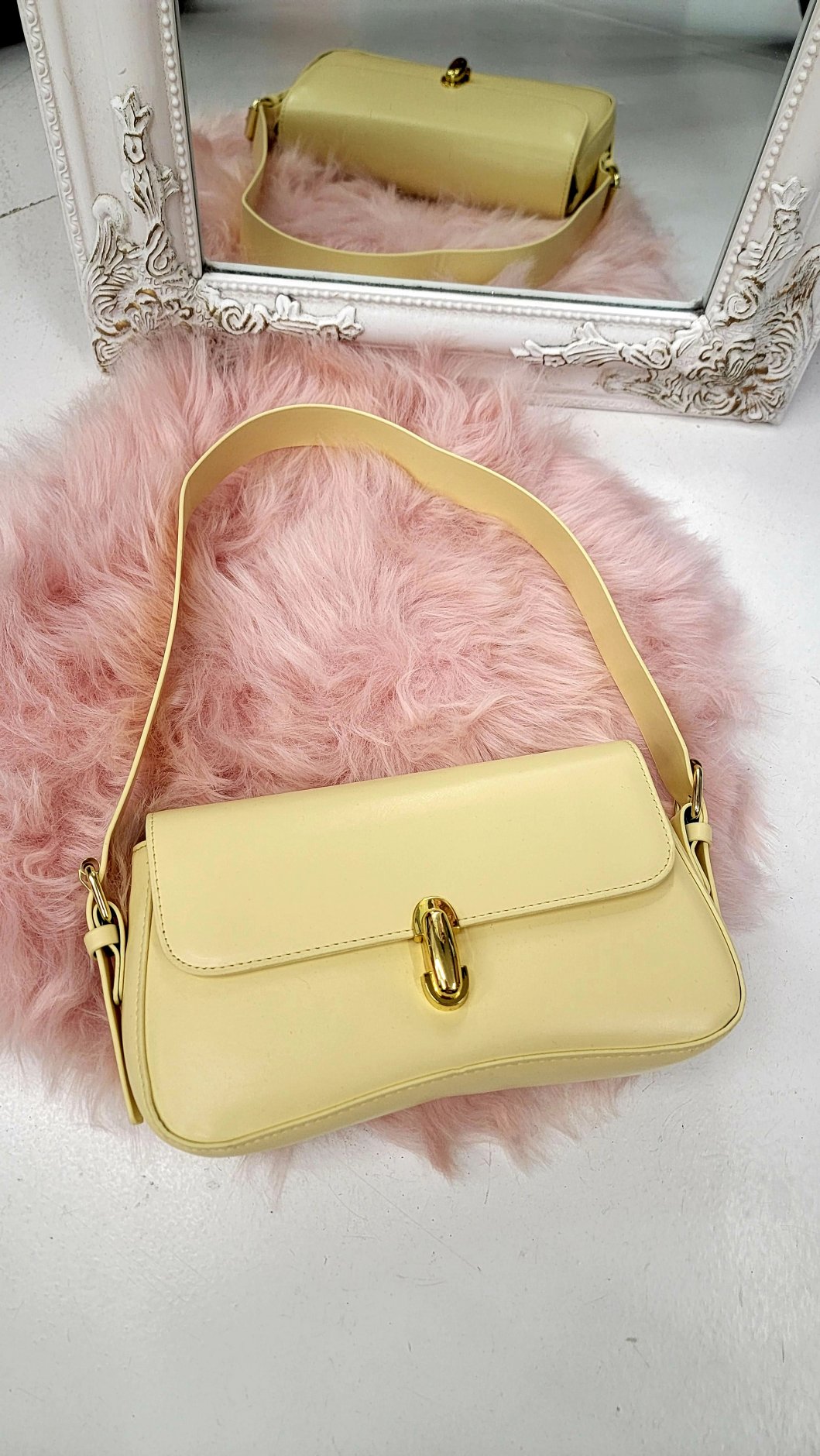 Ця сумочка — неначе крапля весняного сонця у ваших руках. Лаконічний дизайн у поєднанні з наймоднішим кольором сезону робить її ідеальним завершальним штрихом для будь-якого образу.
