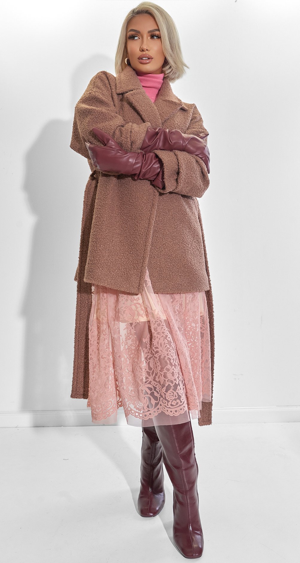 2. Верхній шар: Невагома сітка з вишуканим оксамитовим принтом, що додає образу глибини та фактурності.