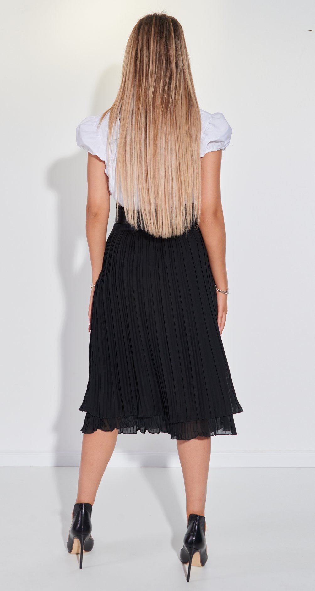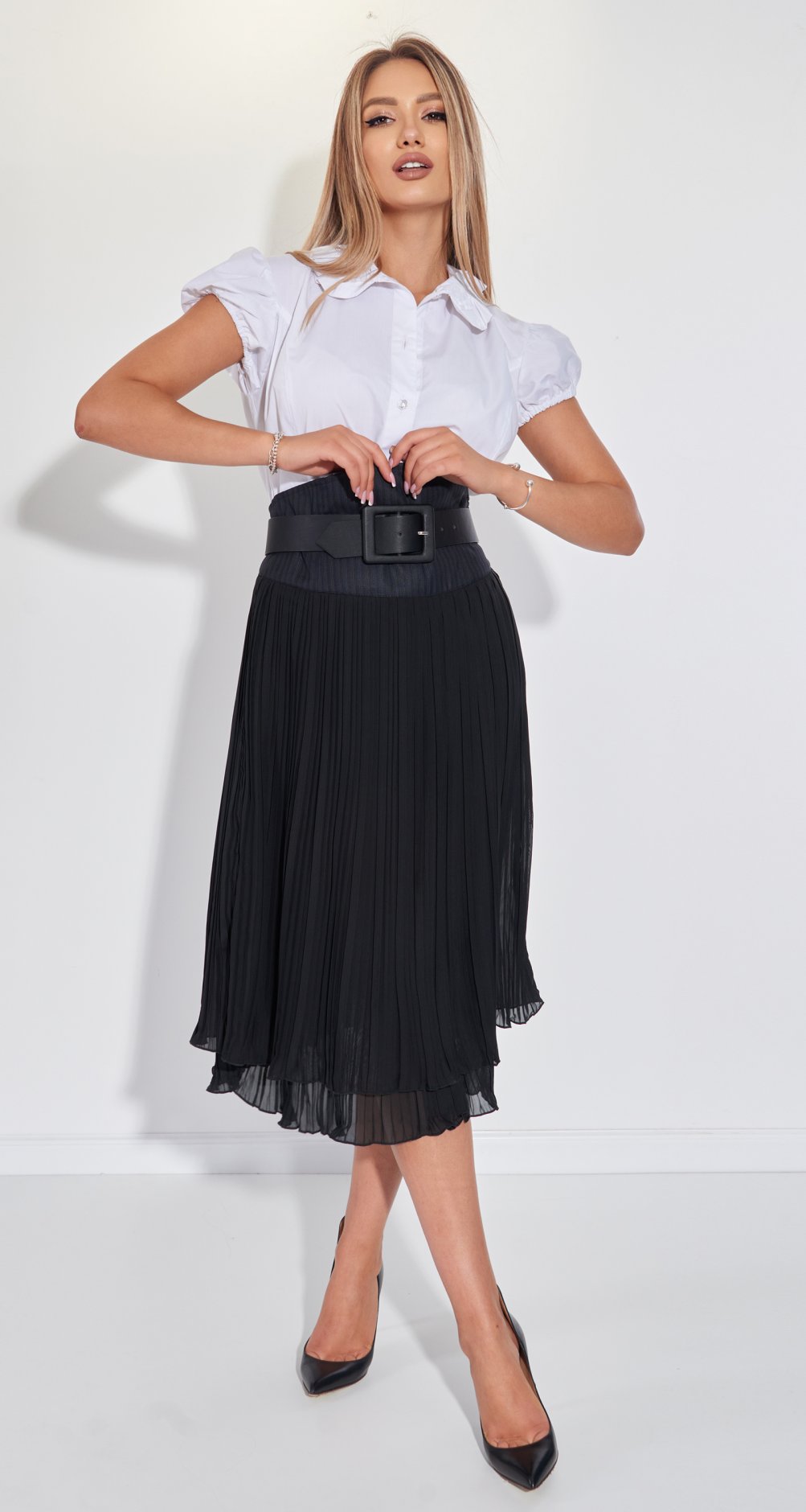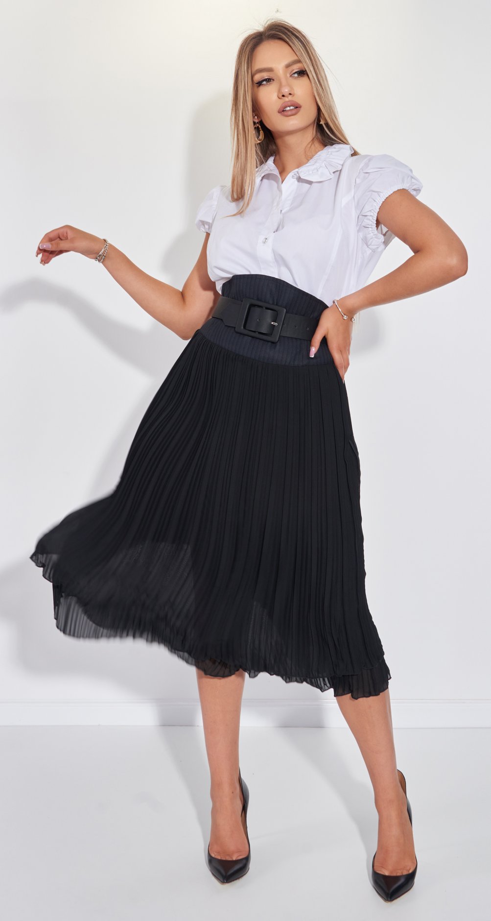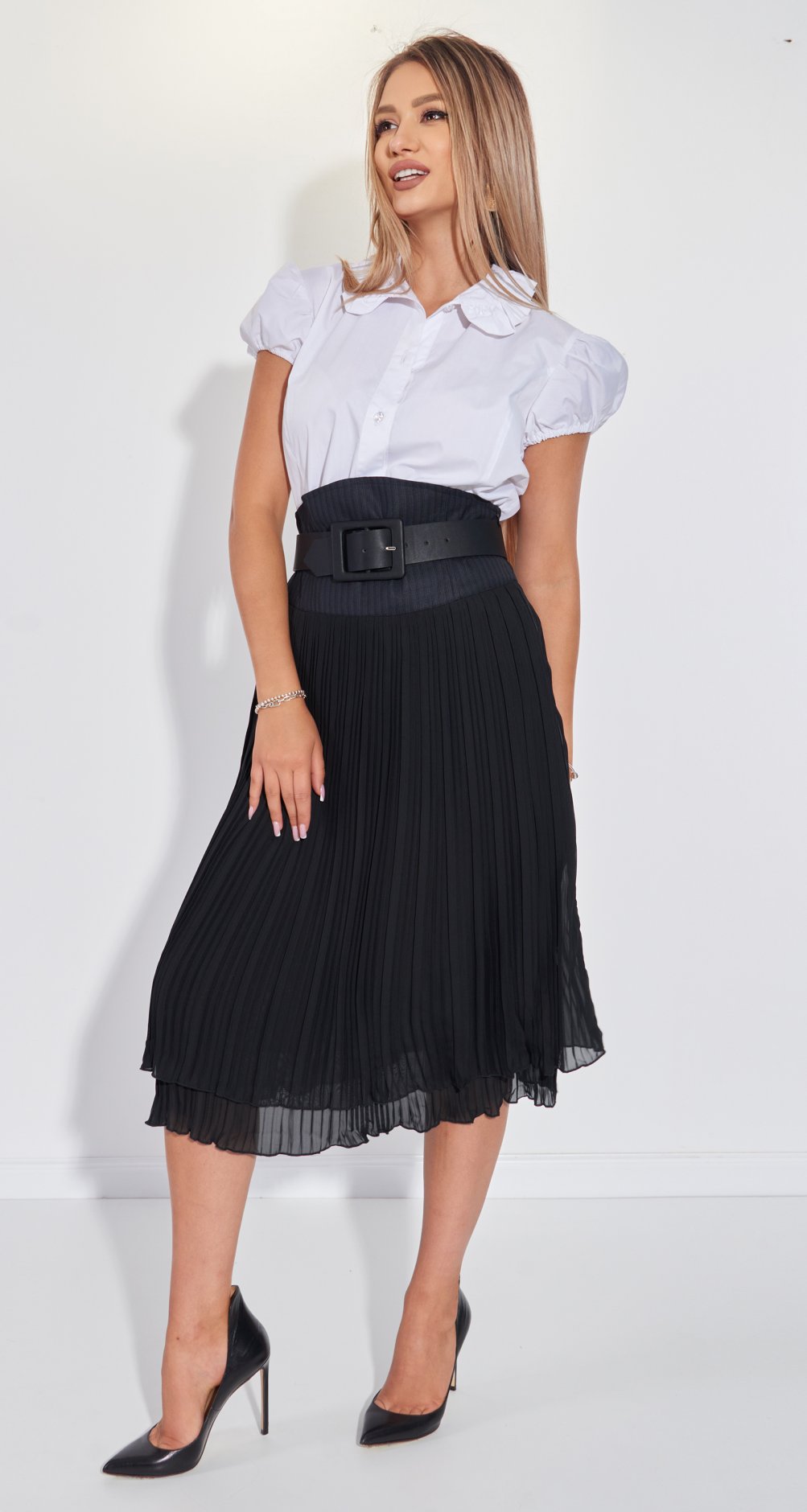Подвійний плісований шифон та стильне оздоблення з костюмної тканини в смужку!