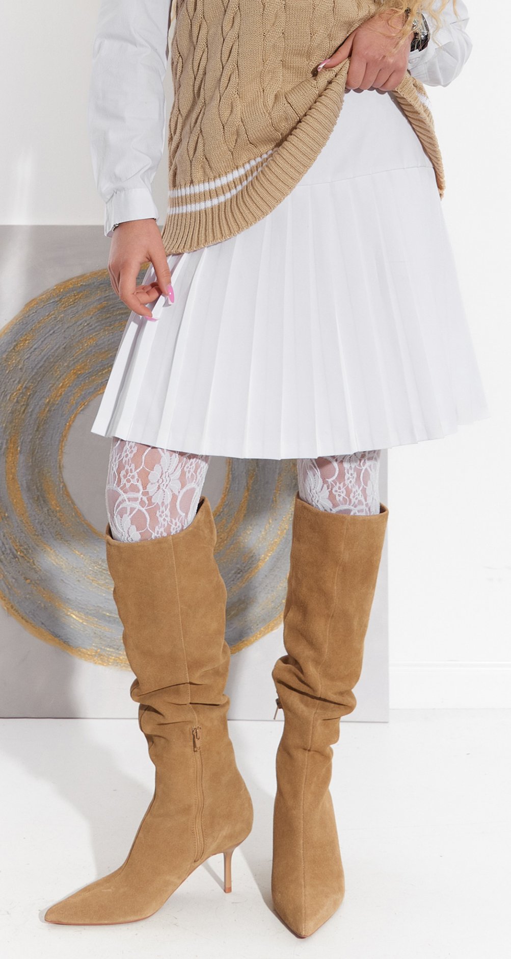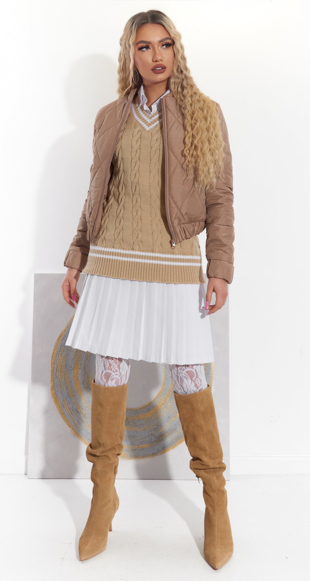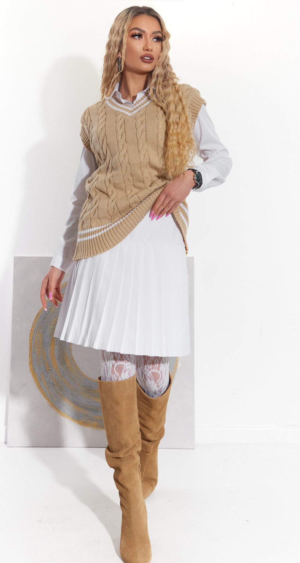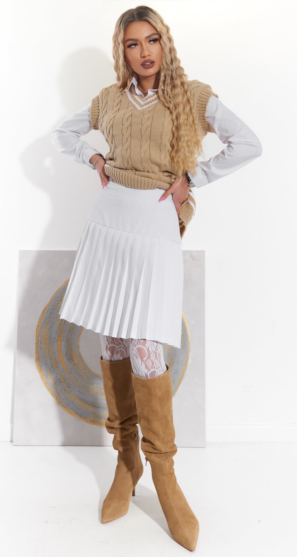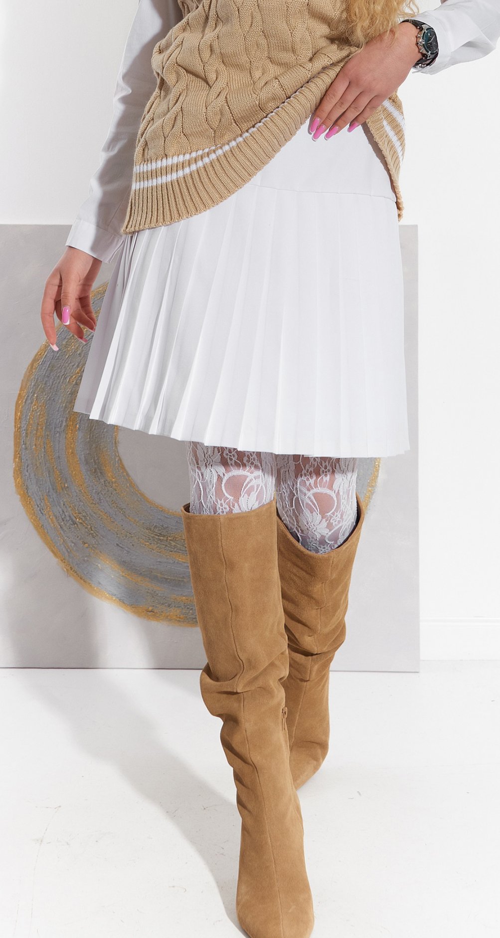 Ця спідниця - втілення стилю та комфорту. Витончені складки створюють плавний силует, надаючи образу легкість та легкість. Кокетка підкреслює фігуру, а підкладка додає додаткового комфорту та зносостійкості. Ідеальний вибір для тих, хто цінує стиль та зручність в одному рішенні. Універсальна для різних подій – чи то ділова зустріч, чи вечірня прогулянка. Додайте цей стильний акцент у ваш гардероб та відчуйте себе на висоті!