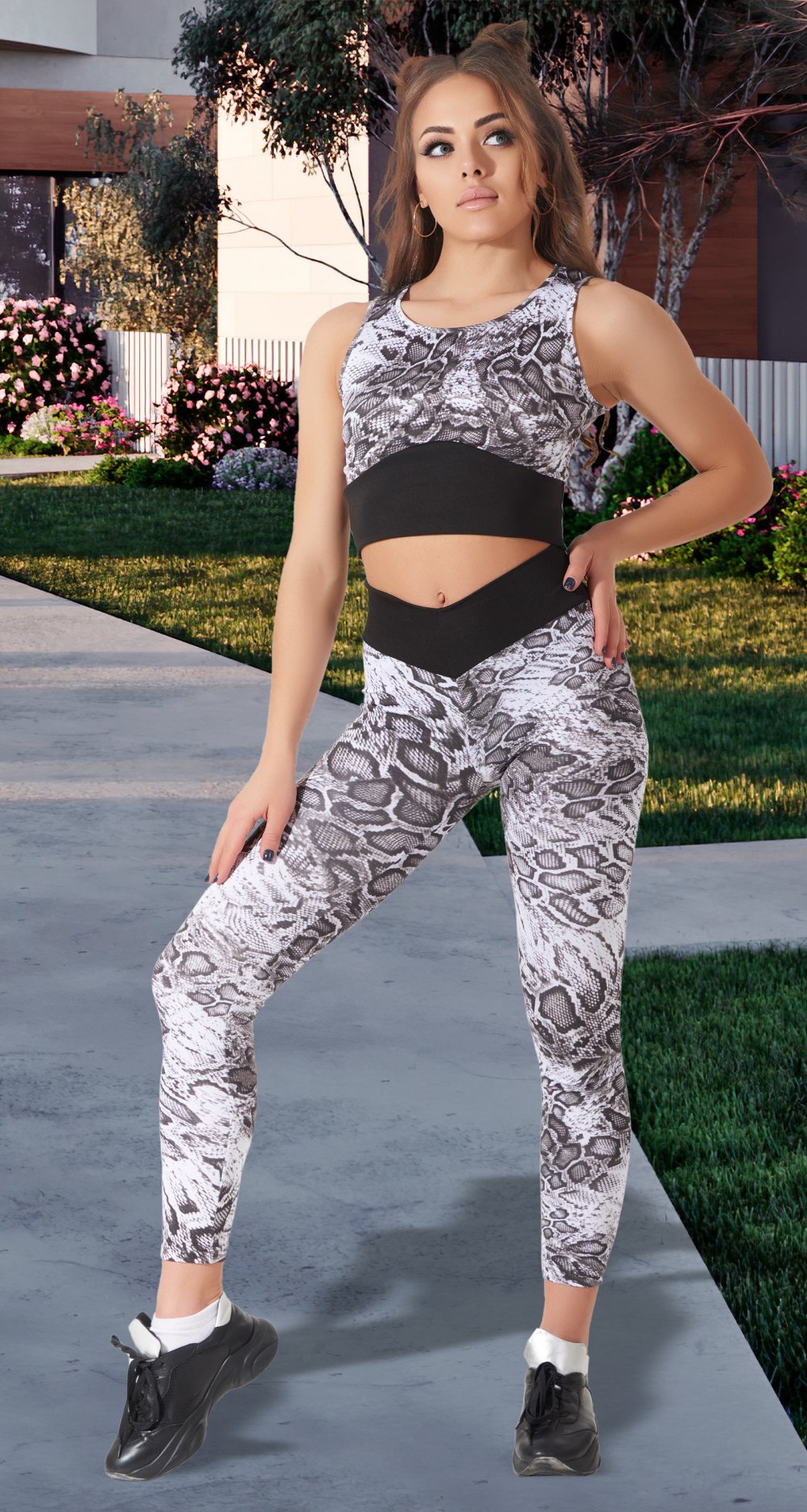 Представляємо вам ідеальний комплект для тих, хто цінує стиль та комфорт у кожному русі. Наш спортивний костюм-трійка з ефектним зміїним принтом створений, щоб ти почувала себе впевнено та привабливо на будь-якому тренуванні. Він однаково добрий для фітнесу, йоги, пілатесу та інших видів спорту.
