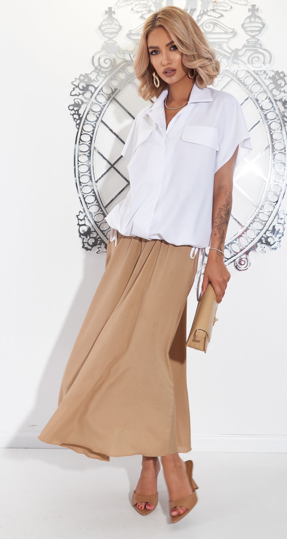 Кулиска по низу сорочки, дасть можливість приталити її та підняти на потрібну висоту! Таку, яка найбільш вигідно буде поєднуватися зі спідницею або брюками, які ви використовуєте в образі!