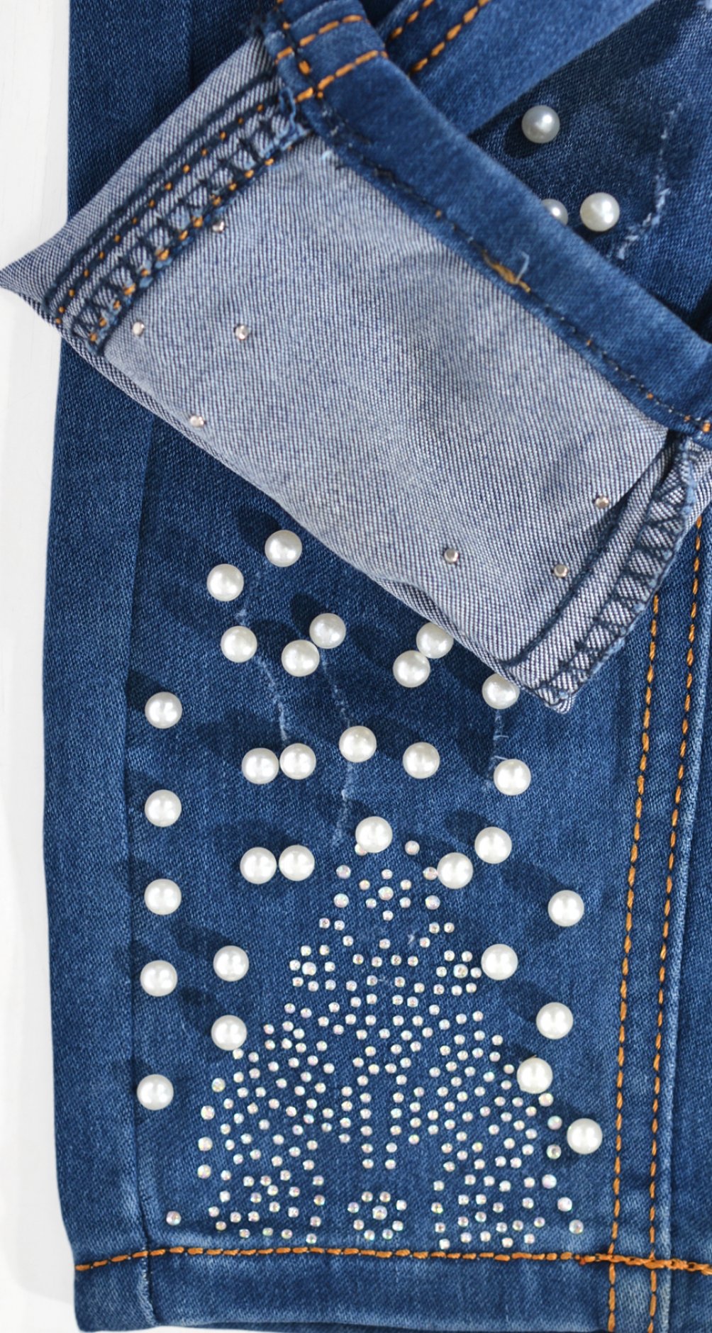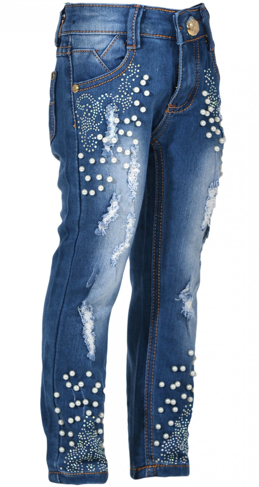 Стильні джинси для дівчаток з перлинами. Відмінний крій та посадка.