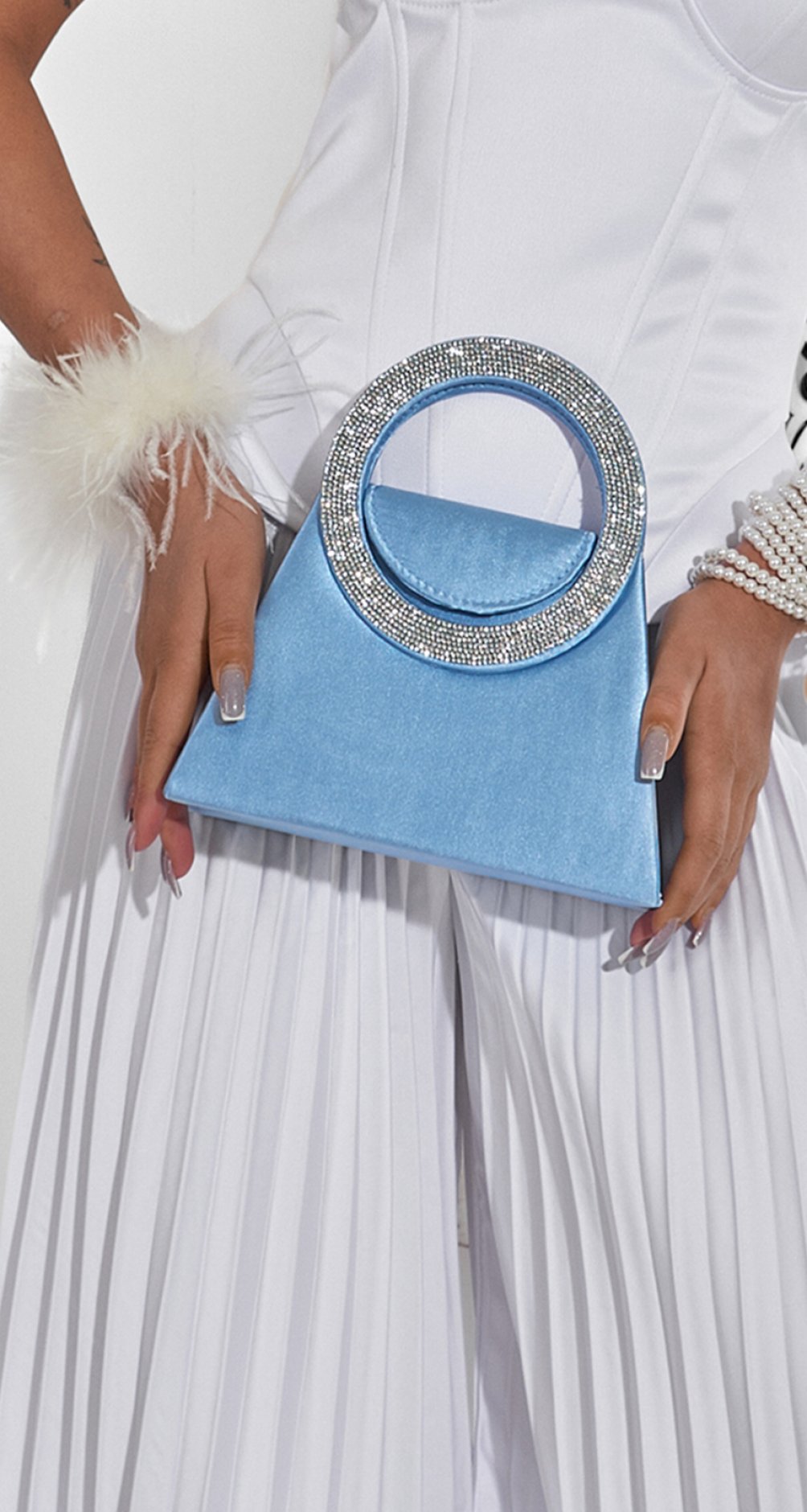 Ця сумочка – справжня ювелірна прикраса у світі аксесуарів. Вона створена для того, щоб бути в центрі уваги, відбиваючи світло софітів та доповнюючи ваш вечірній образ небесною ніжністю та кришталевим блиском.
