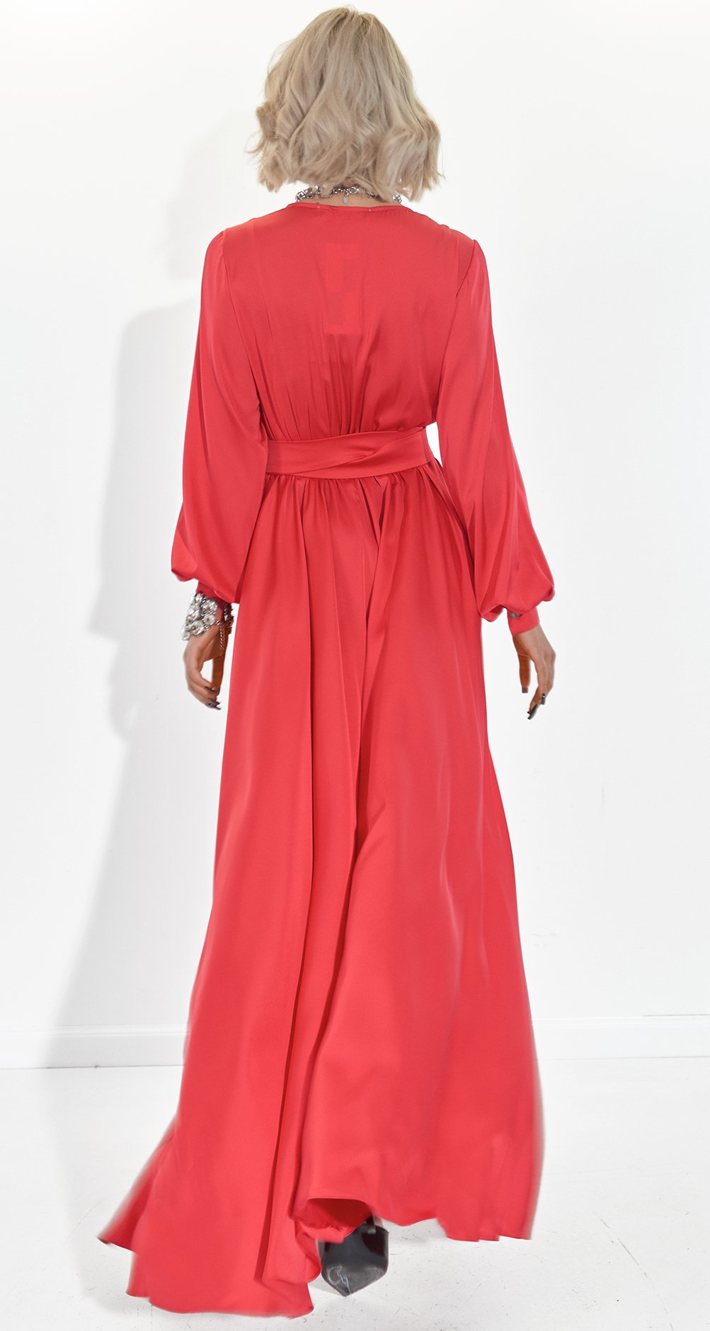 Спокусливий Крій: Глибоке декольте на запах і високий розріз на нозі створюють неймовірно жіночний силует. Це чиста елегантність та шик!