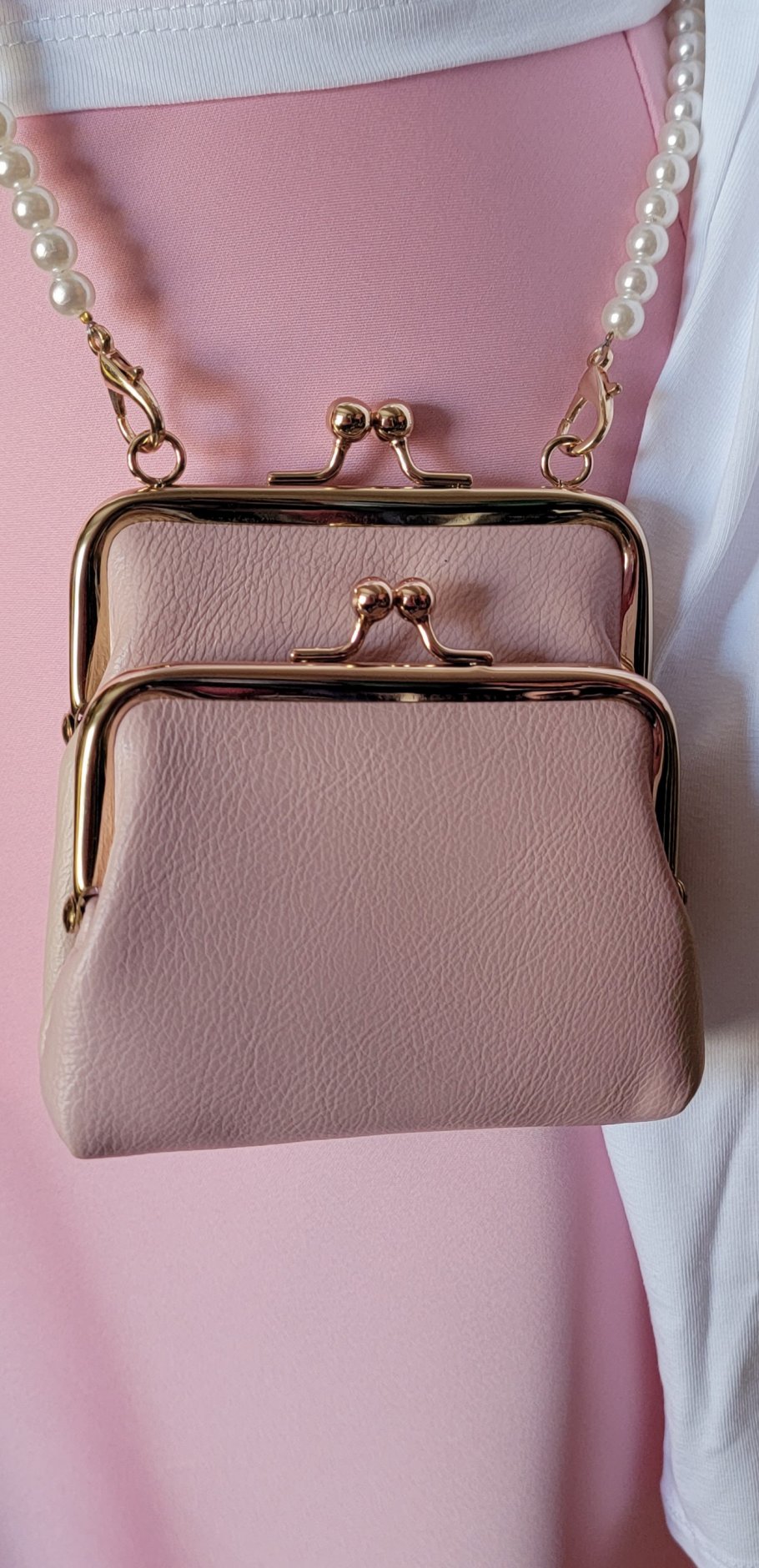 Ювелірний акцент: Довгий ремінець із перлин дозволяє носити сумочку як кроссбоді, залишаючи руки вільними та додаючи образу ніжності.