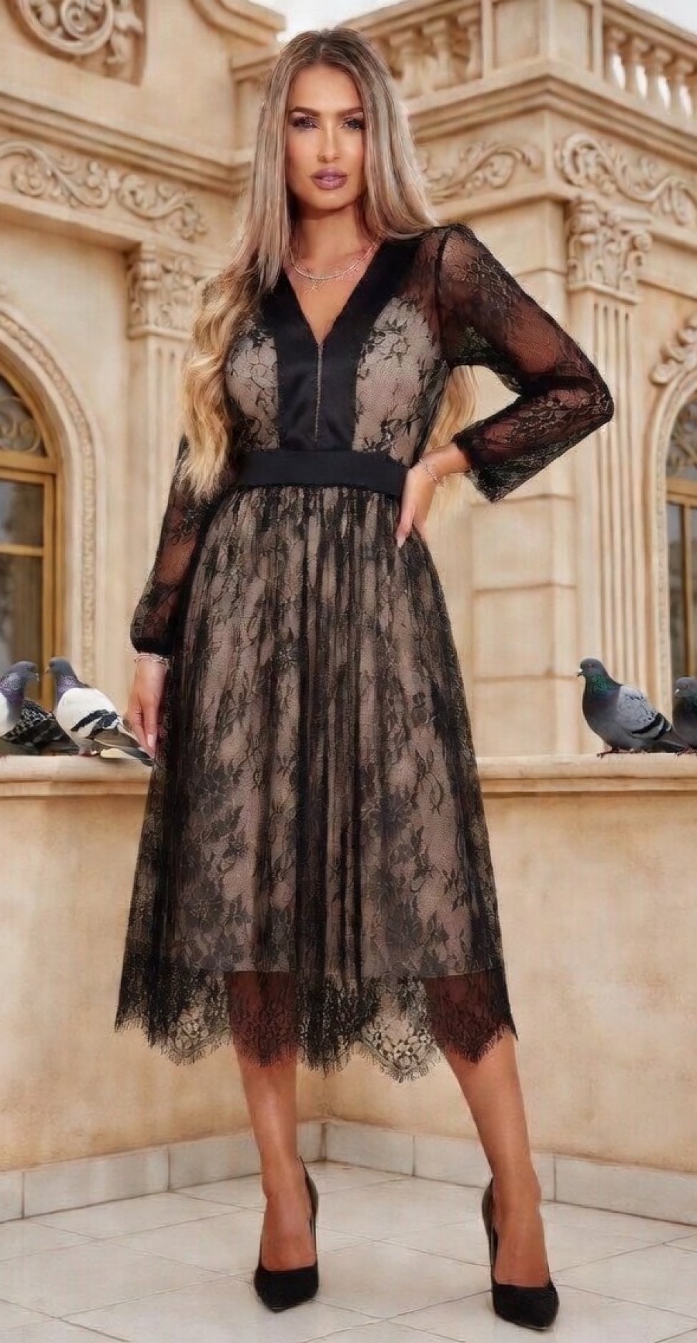Гра фактур: Глянцеве сяйво мережива в поєднанні з вишуканим драпіруванням створює об'єм і м'які переливи, які хочеться розглядати нескінченно.