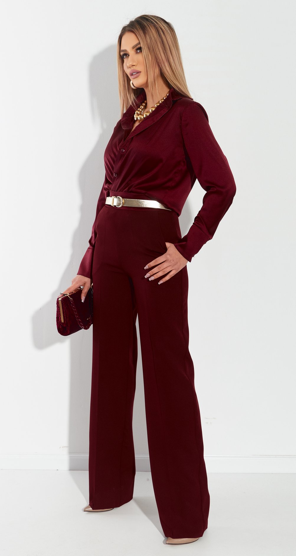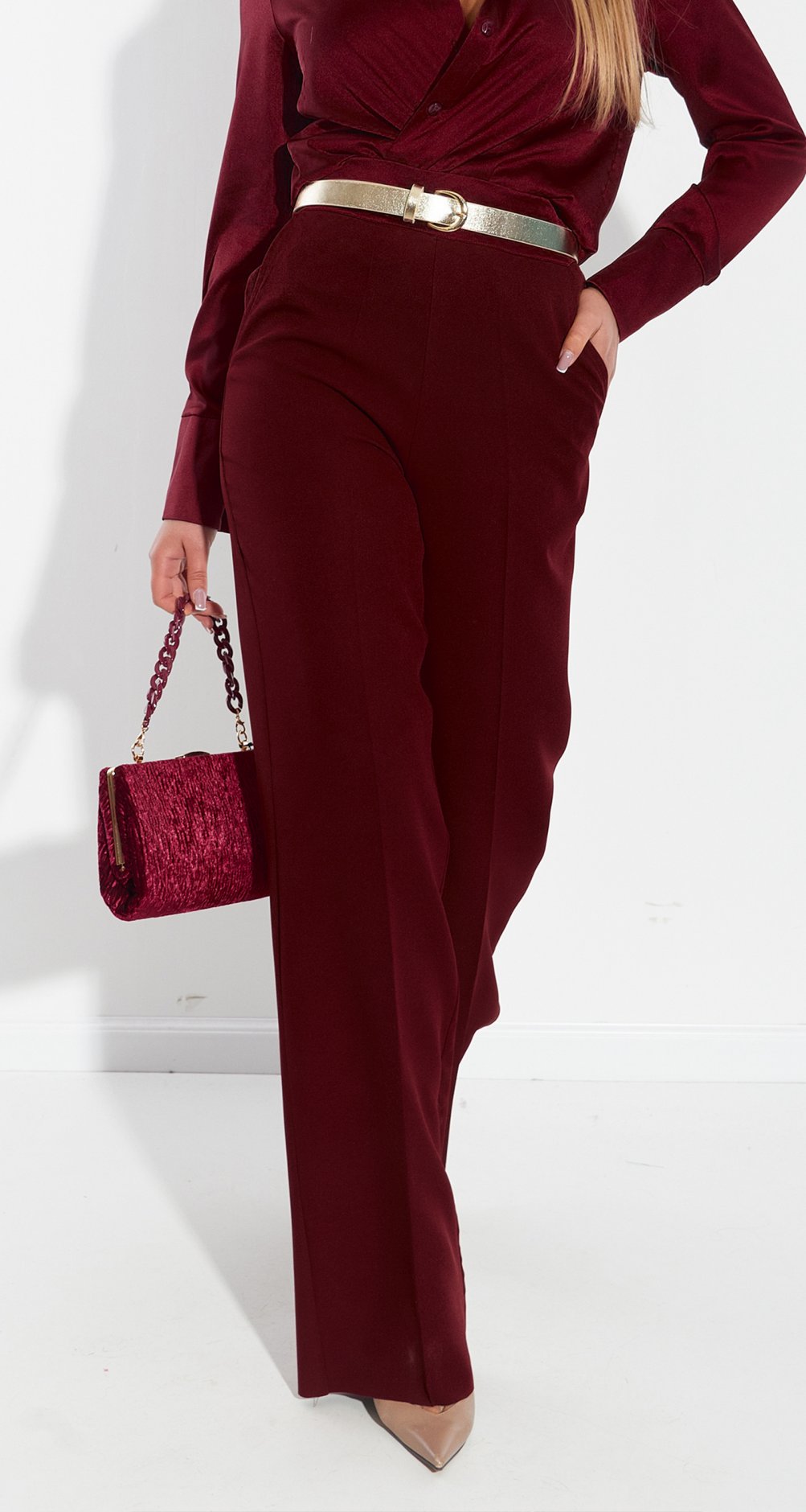 Вечірні штани з високою талією. На широкому шовковому поясі.