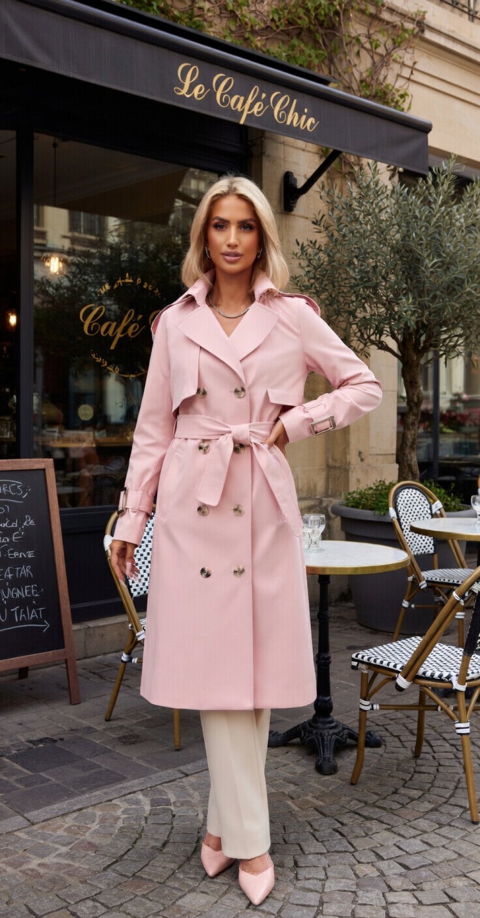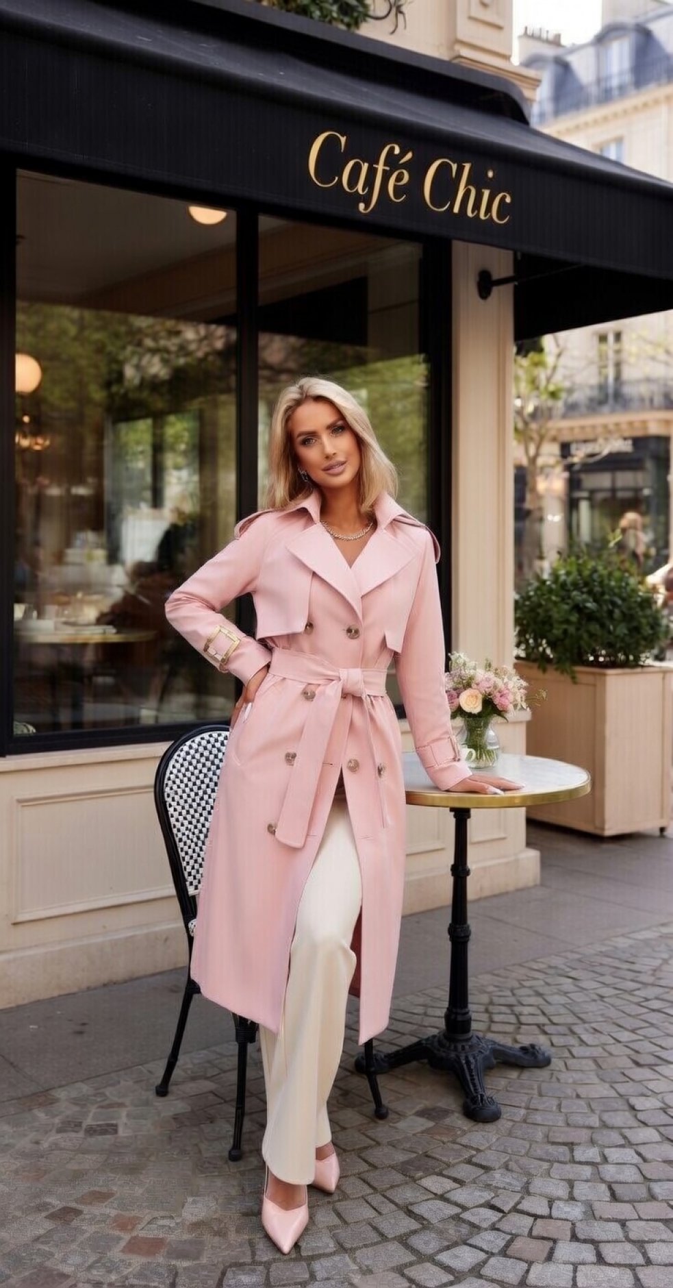Цей тренч - ідеальне втілення весняної романтики та класичного стилю. Ніжно-рожевий відтінок додає свіжості, а перевірений часом крій робить його незамінною інвестицією у базовий гардероб.
