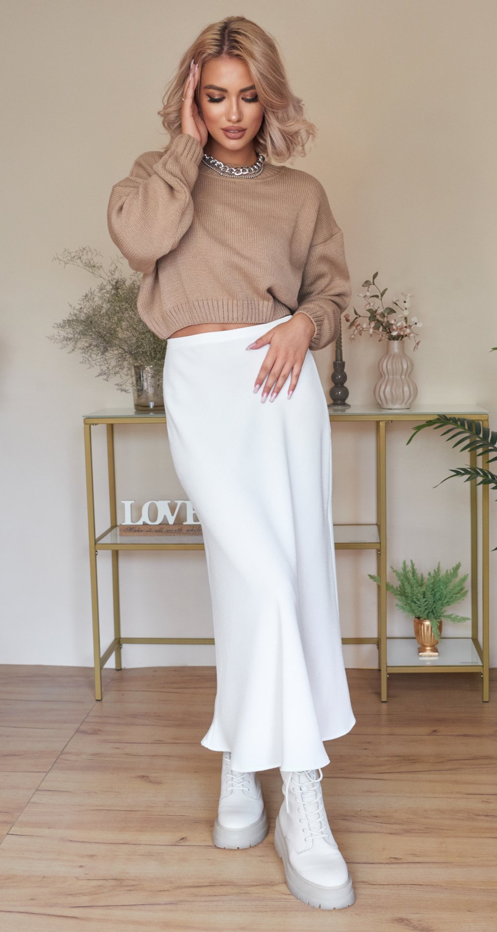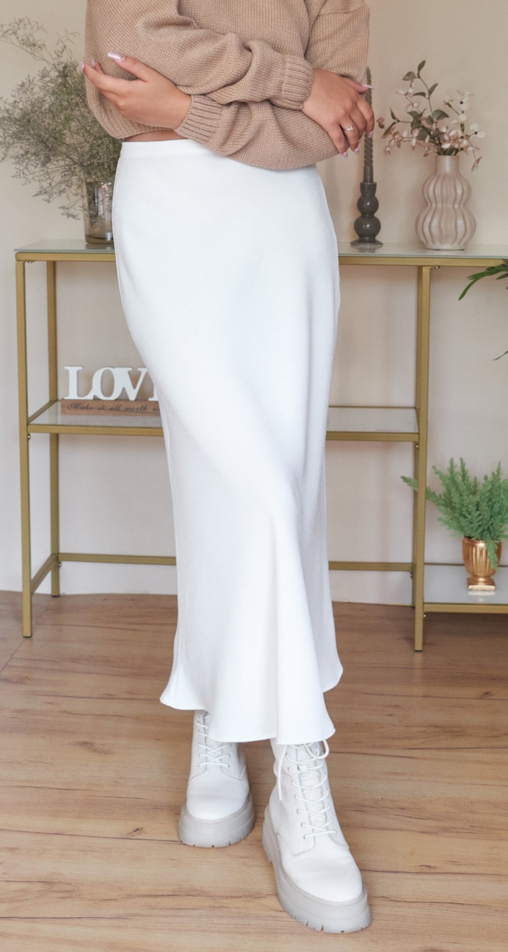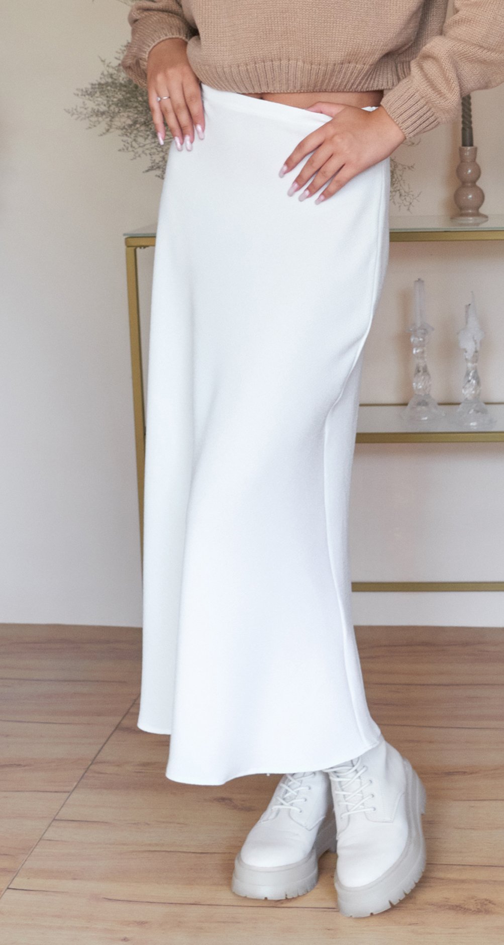 Вона підходить до всього! Усі модні моделі светрів, сорочок, жилеток, лонгслівів та бомберів комбінуються з косою спідницею у довжині міді!