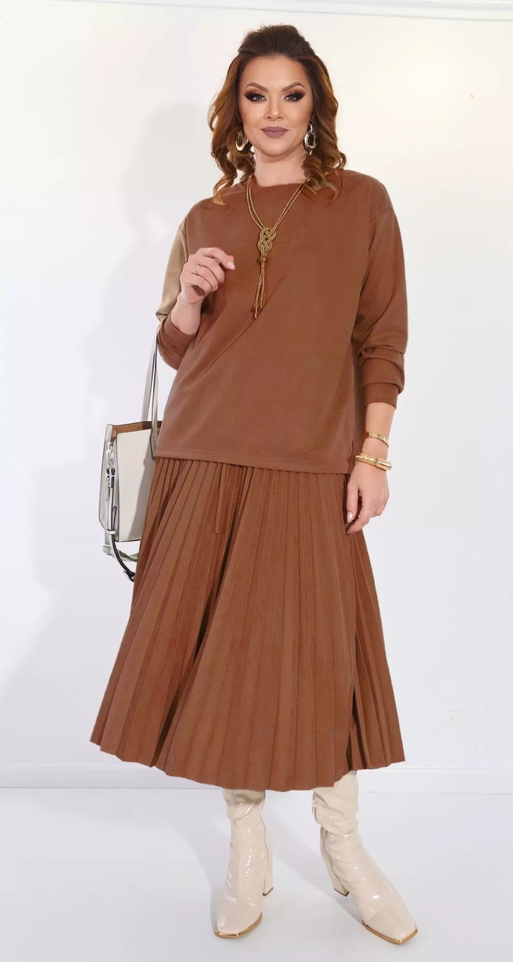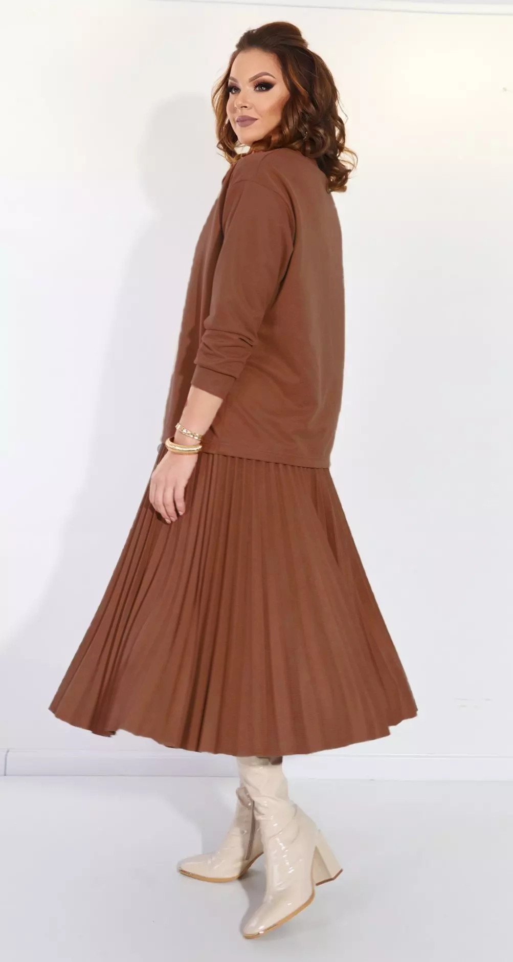 Замшевий костюм зі спідницею пліссе